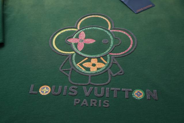 Lv Louis* Laboob joint limited edition 25Ss early spring new Laboob printed short-sleeved light luxury men and women's daily commuting essential items. Correct version. Welcome to compare detailed features. 280g% pure cotton double yarn jersey fabric, single-dye custom dyeing, special thickening 32 double-strand 1X1 thread beautiful velvet fat classic doll, high-temperature hot-drilling ready-to-wear garment, dyeing, fading, fried snowflake craft, then washing for distressing, general washing to enhance the effect. Double needle sewing cross-seam craft original main label, washable hangtag, brand moisture-proof paper packaging Color: black, white, blue, green Size: S M L XL