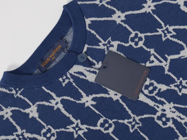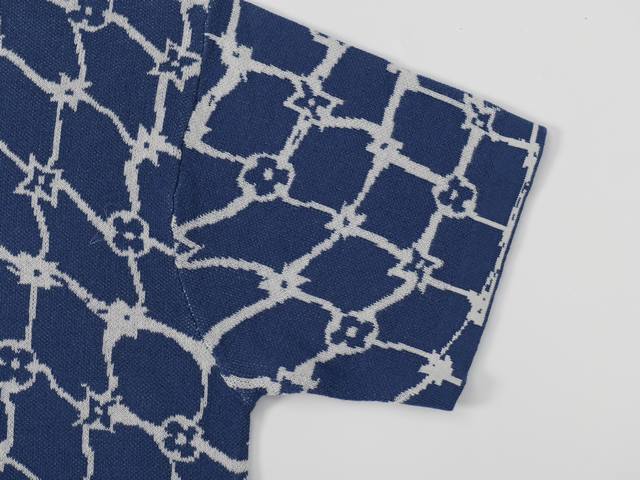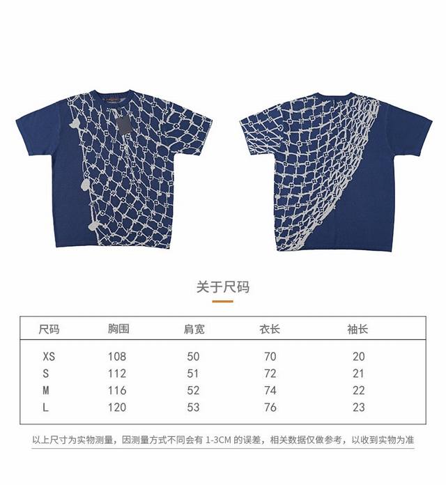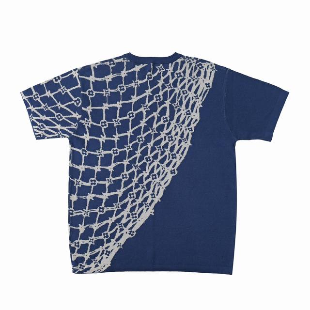 Lv Ss Spring/Summer New Nautical Fishnet Jacquard Knit Short Sleeve T-Shirt This