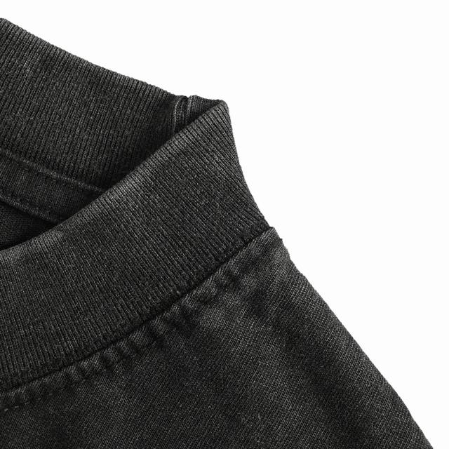 The fabric is custom-woven and dyed G32 double yarn fabric, with a wide neckline thread of 300G1*1 cotton thread, which will not deform after long-term wear. The fabric is woven into grey cloth after the yarn is purchased, and then washed and pre-shrunk, and then taken to the dyeing factory for dyeing. It is shaped after ring drying and washing. Because the fabric has been washed twice, it has the fourth-level color fastness of the foreign trade standard and is not easy to fade. The printing is screen glue printing, and the front panel is spliced with circle cutting technology, which is very distinctive. The main label is purely hand-sewn, and all three labels are customized. It is versatile for both men and women