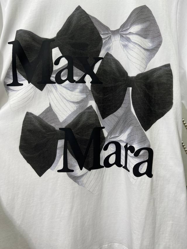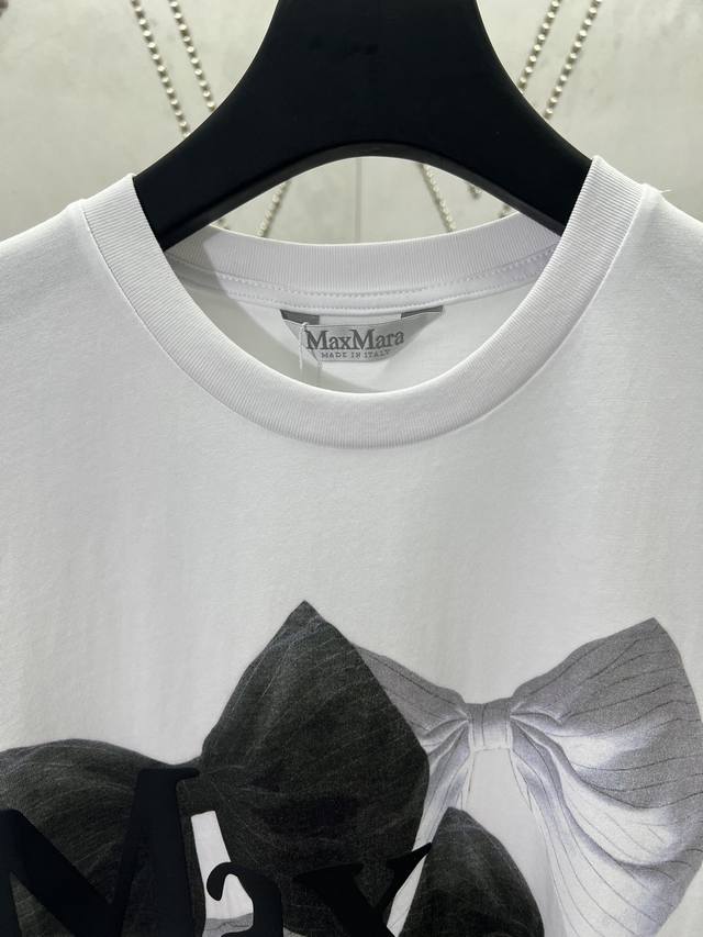 / Maxmara 25Ss new bow print round neck short sleeve regular T-shirt high version