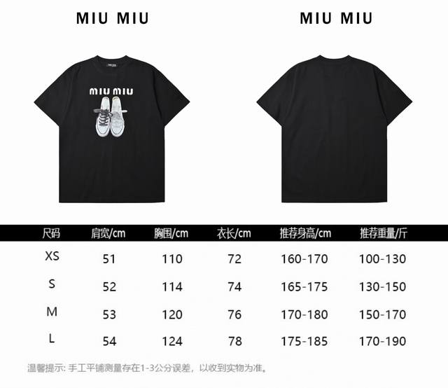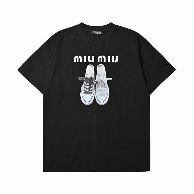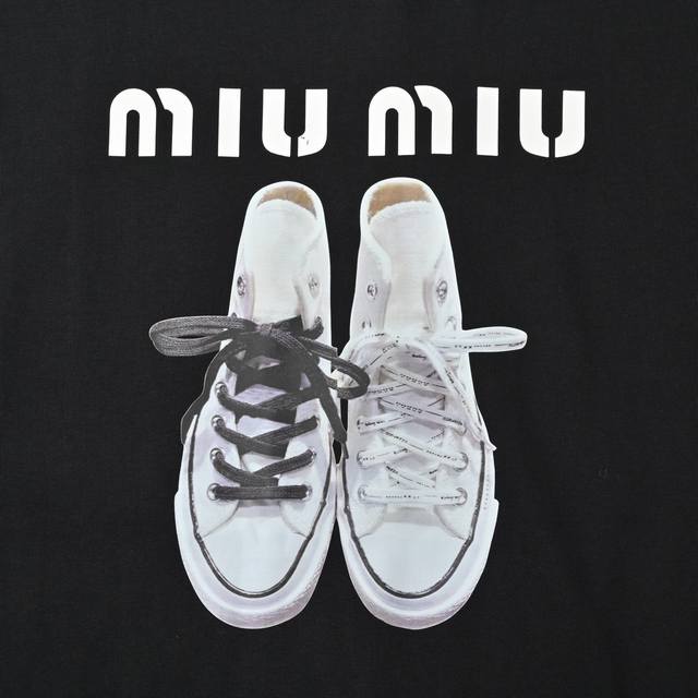 Miumiu canvas shoes print short-sleeved T-shirt