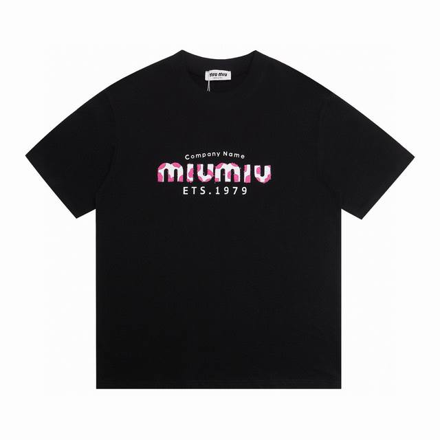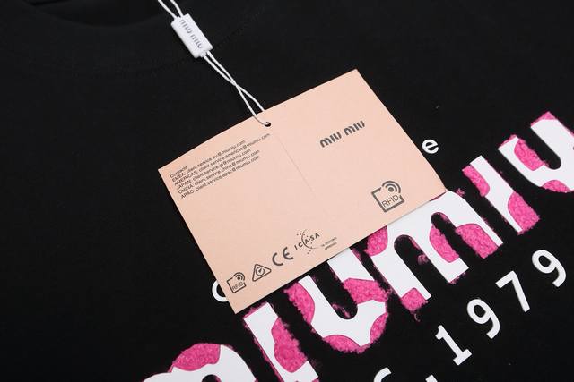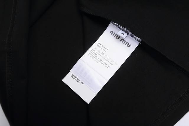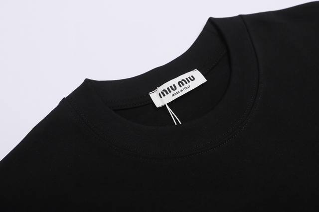 Miumiu's new 2025 SS plush and silicone lettered couple's casual short-sleeved top! Made of 290g double-yarn cotton, plush and silicone lettered design craftsmanship! Accessories: Original mold, certified label, and silk care label. Authentic shopping-grade original hangtag, matching lanyard, 3D hanging beads, and original packaging bag. Craftsmanship: Authentic stitching! Perfect armhole alignment! Countless re-prints guarantee 100% authenticity! The correct version is unisex and super eye-catching, stylish, and stylish! Colors: Black and White Sizes: S-XL (Image 9)