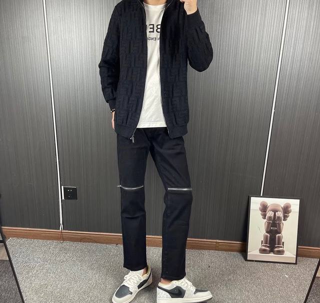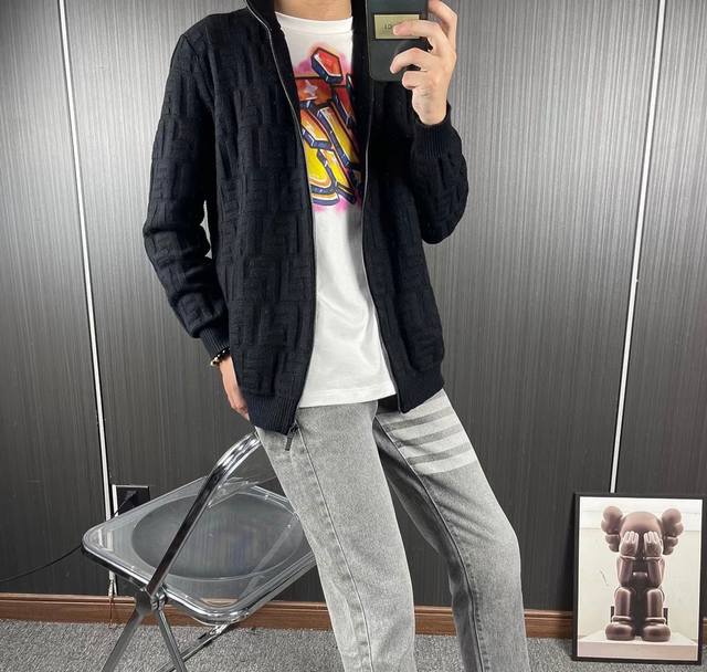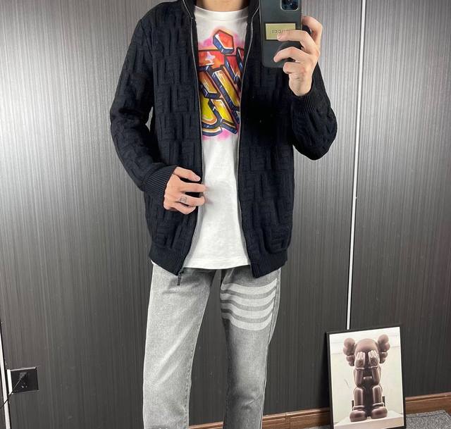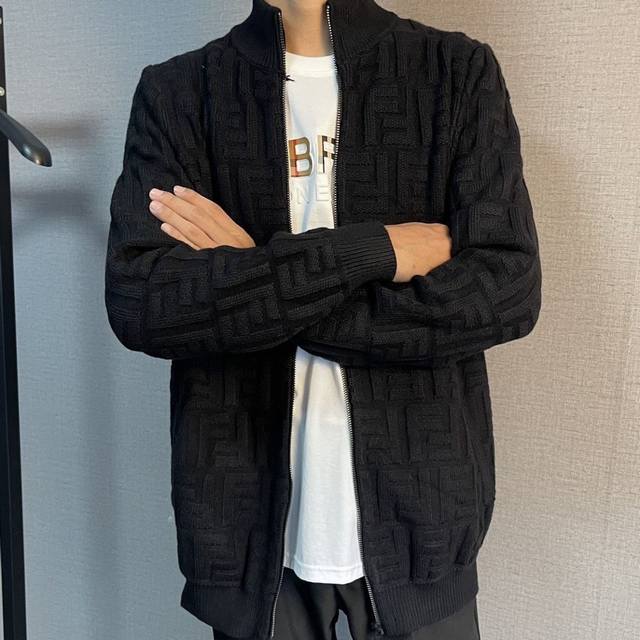 Model: Fendi all-over jacquard cardigan sweater. This jacket is the same as Su Liu's. This style is made of 100% expanded Merino wool and is made on imported looms with a 5-needle wavy finish. The placket is double-sided plain weave with a stretch-tie finish to prevent deformation. The hem features threaded, body-color details. Heavy-duty hardware is used, and the exclusive one-to-one matching pattern is made with 15 sets of molds. The colors are vibrant and three-dimensional, and the soft, gentle wash makes it smooth and comfortable. Sizes: M-Xl. Shoulder width: M 47 50 66 L 49 55 70 Xl 51 57 72