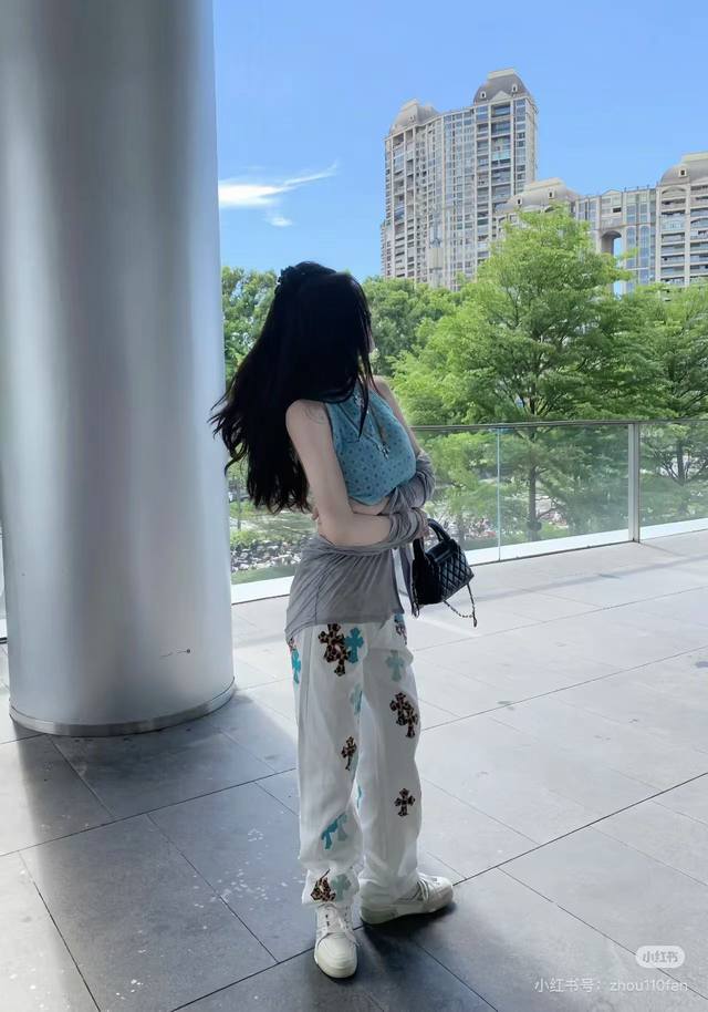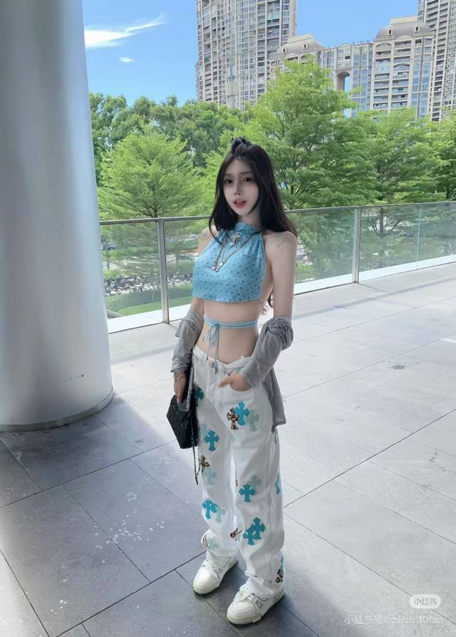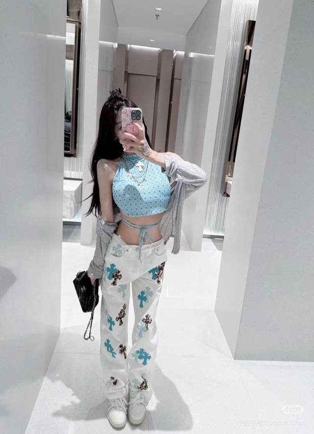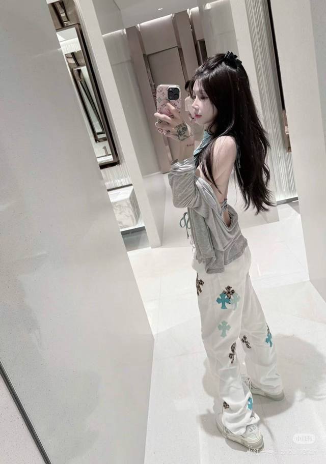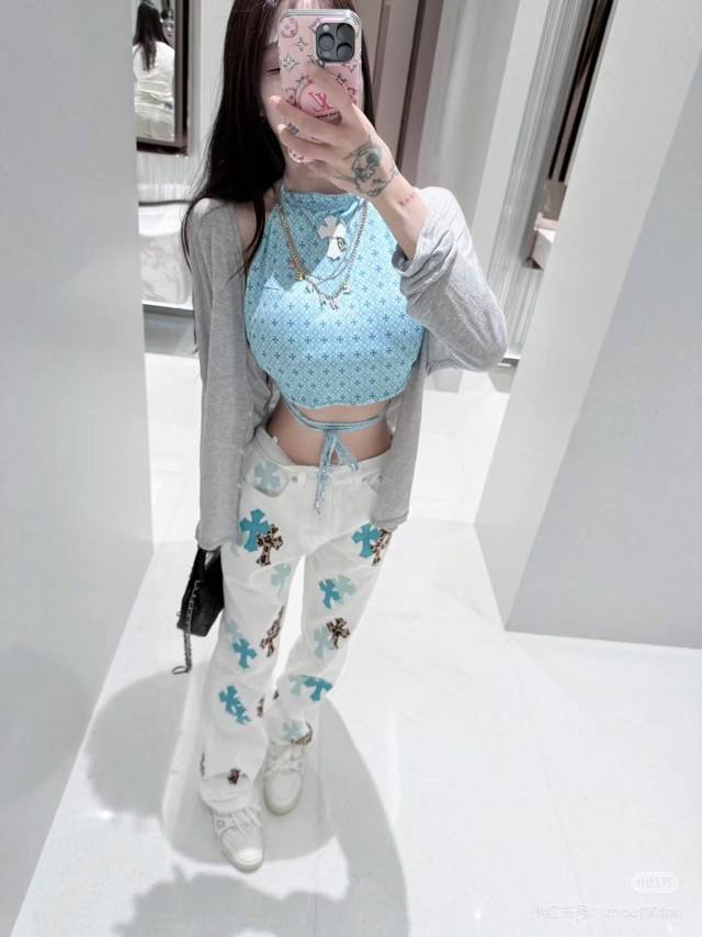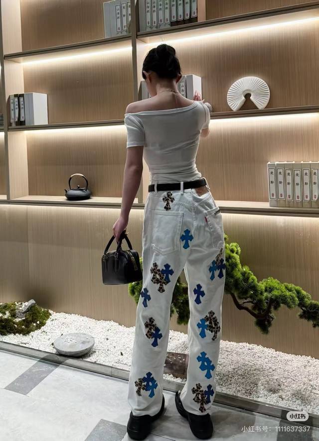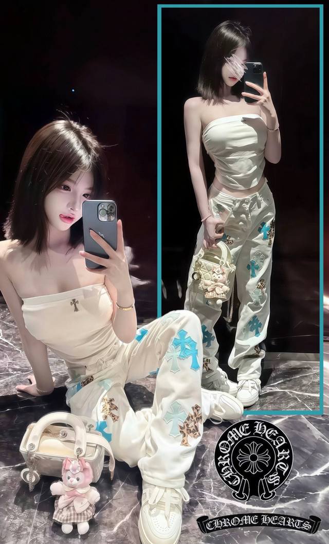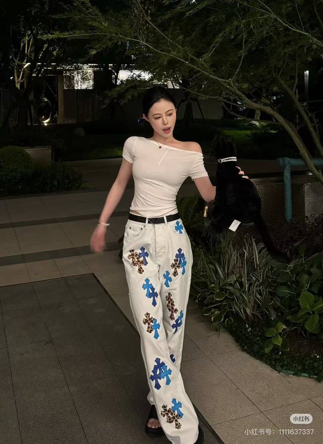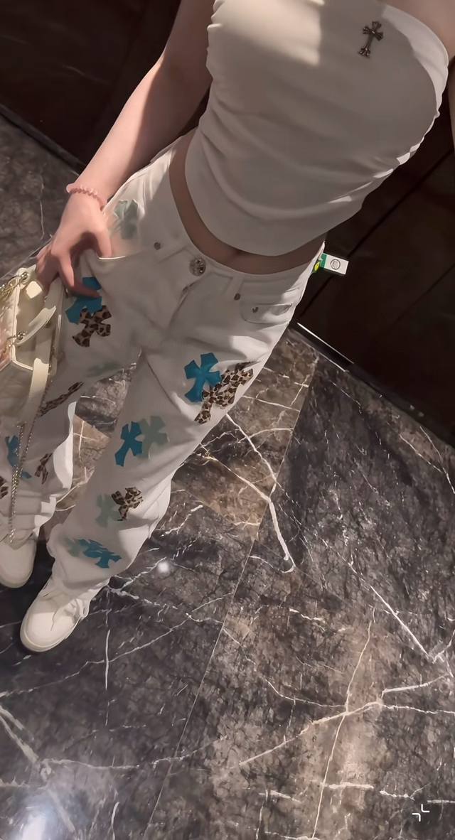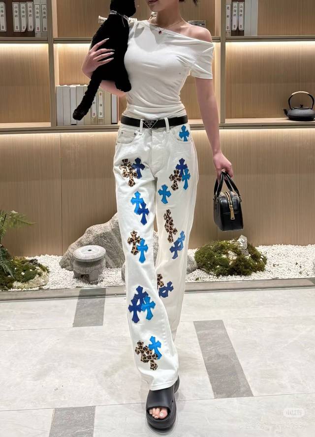 Model Picture Chrome Hearts 25Ss white pants with three-color leopard print and