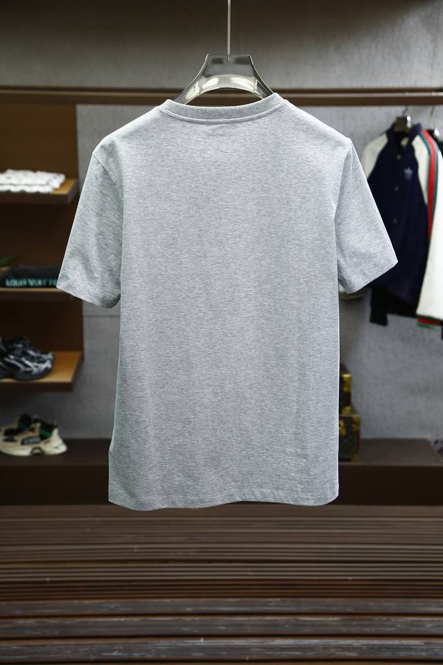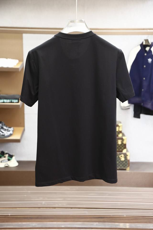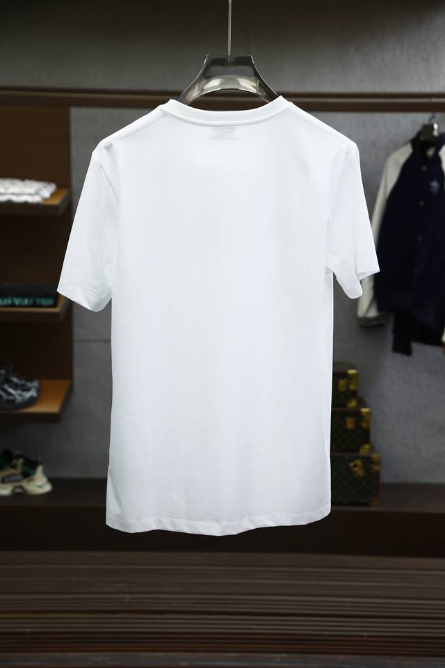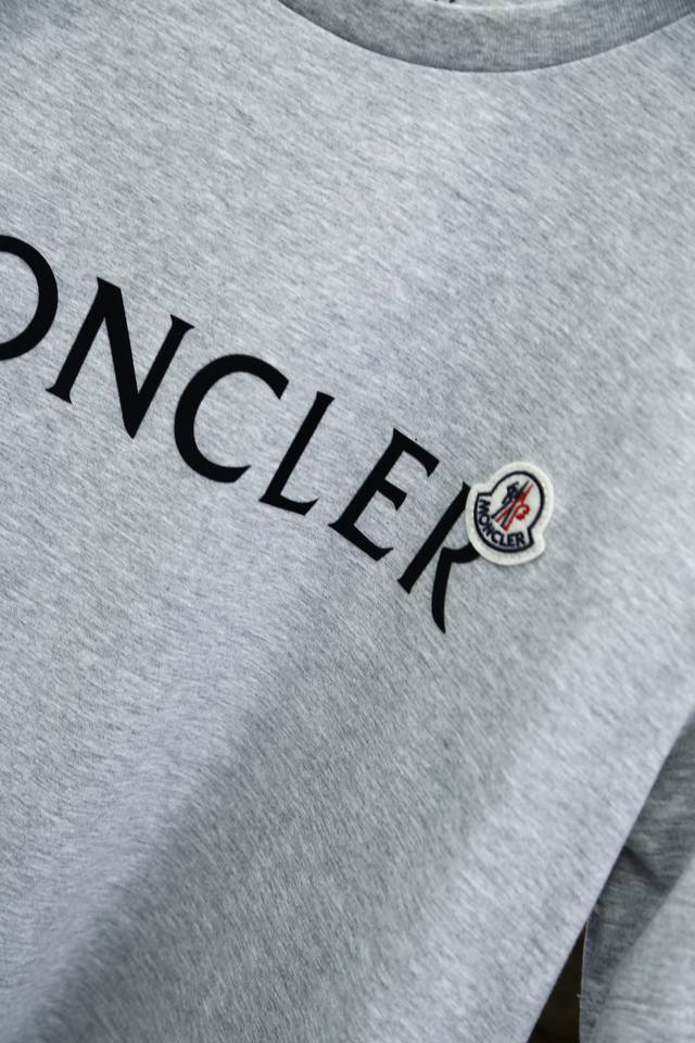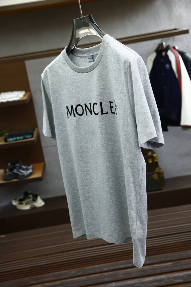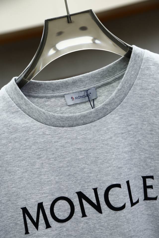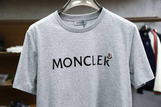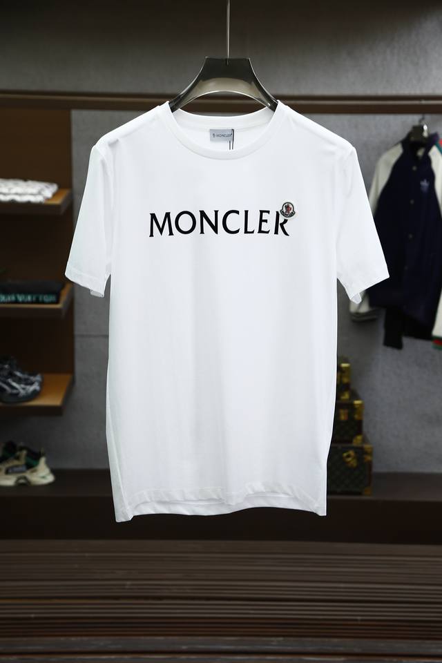 Monc&Ler spring and summer men's short-sleeved T-shirt with flocked logo on the front. The letters on the chest are flocked and printed with classic felt embroidery to highlight the brand's recognition. Customized high-count and high-density 80-count double mercerized cotton fabric, comfortable and breathable, with delicate and slightly elastic fabric; black, sea blue, green, white S