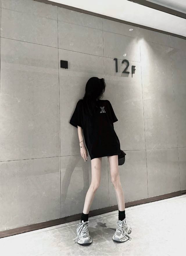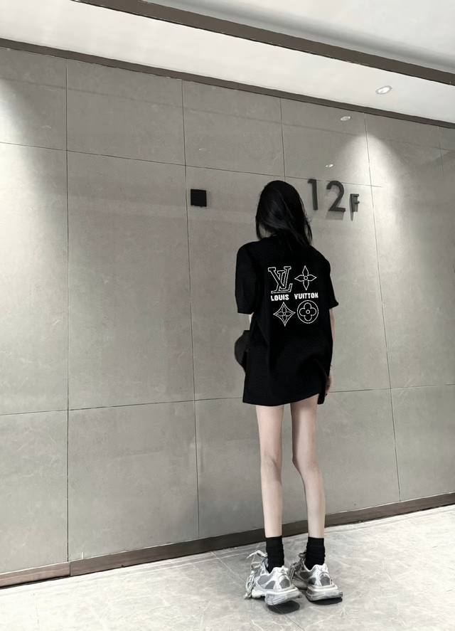 2025Lv embroidered short-sleeved new style letter slogan couple short-sleeved