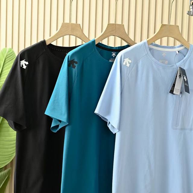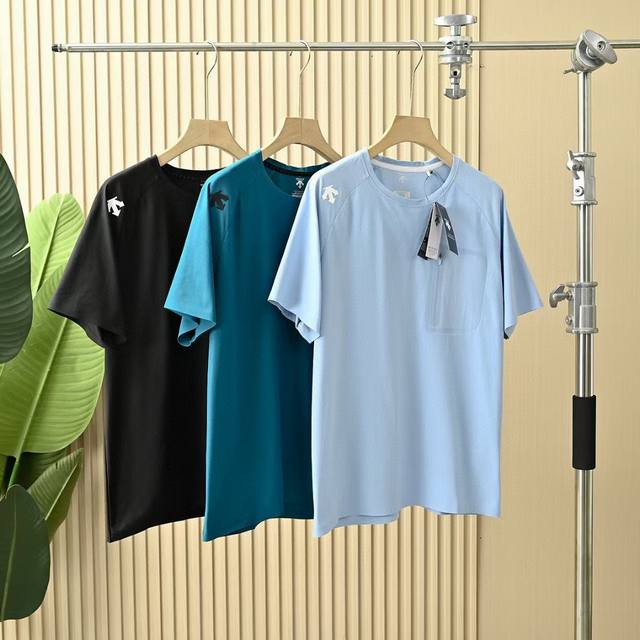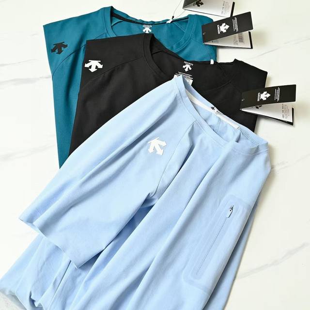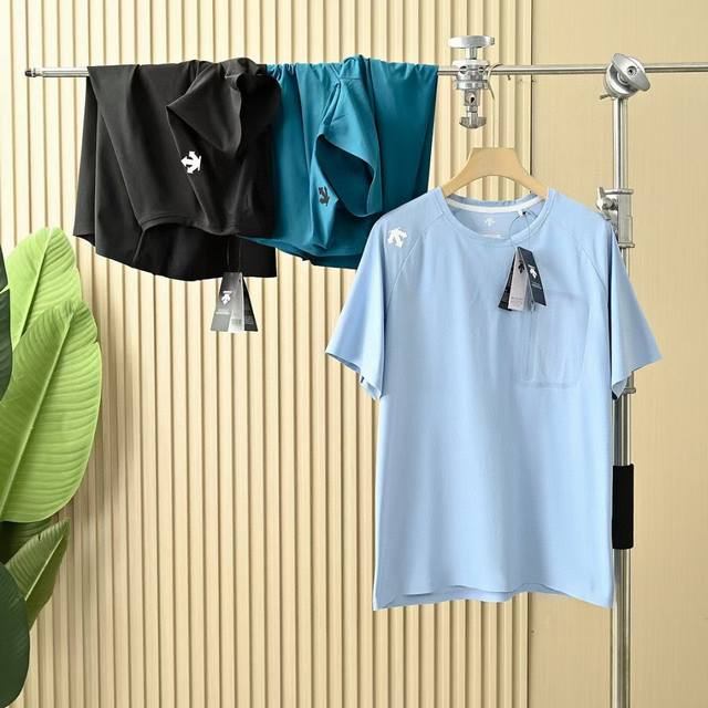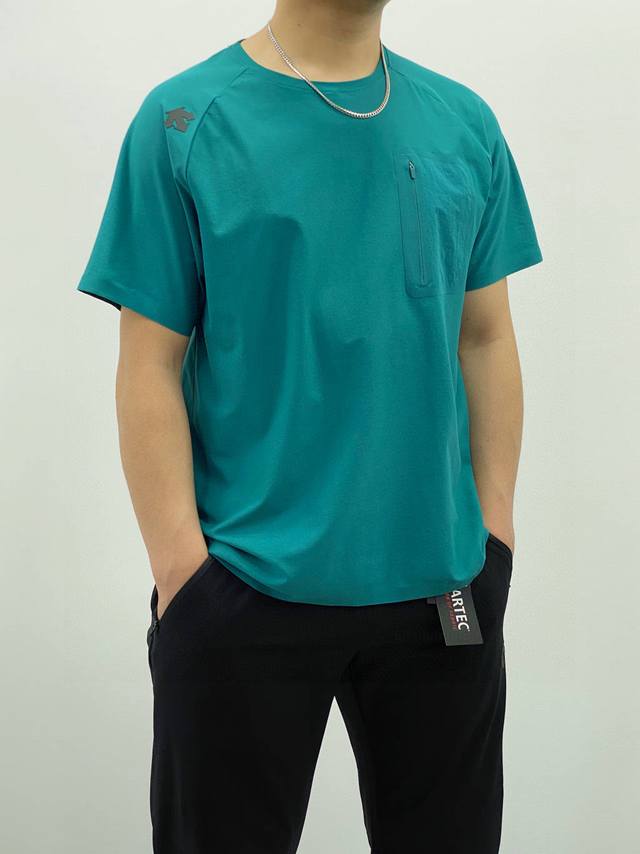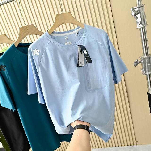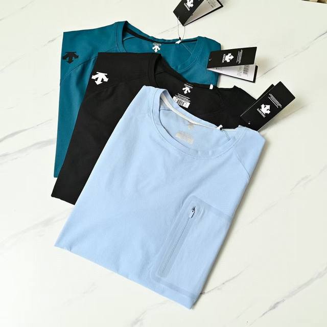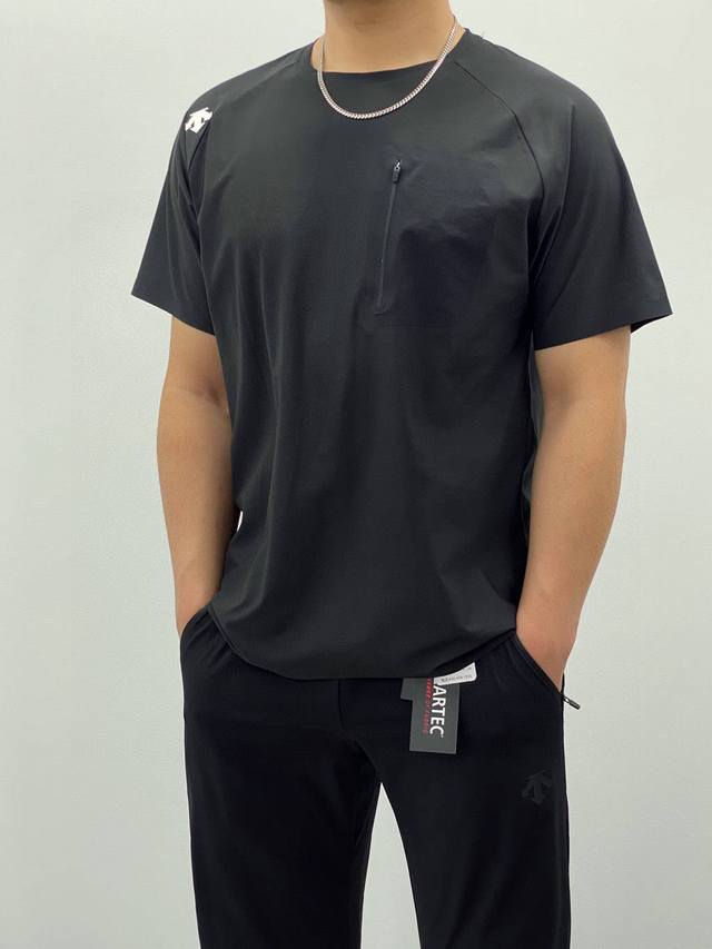 New arrival Descente men's summer round neck short-sleeved T-shirt with zipper p