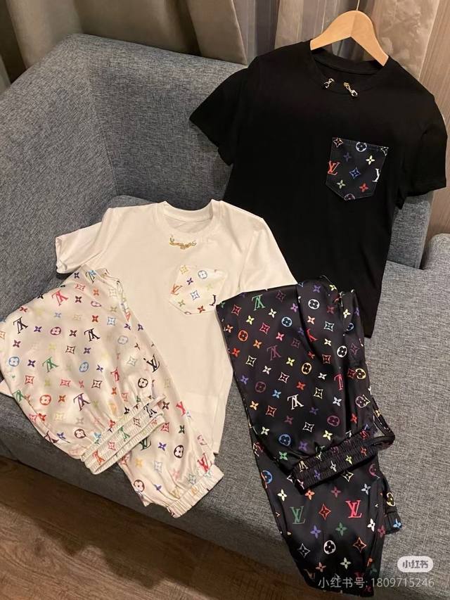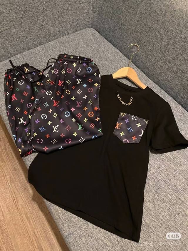 Lv donkey satin pants with short sleeve suit