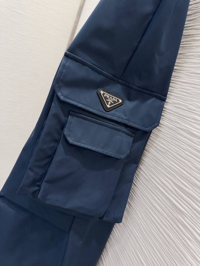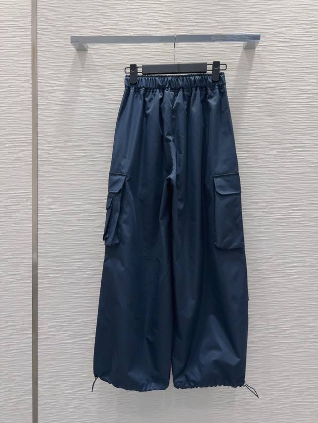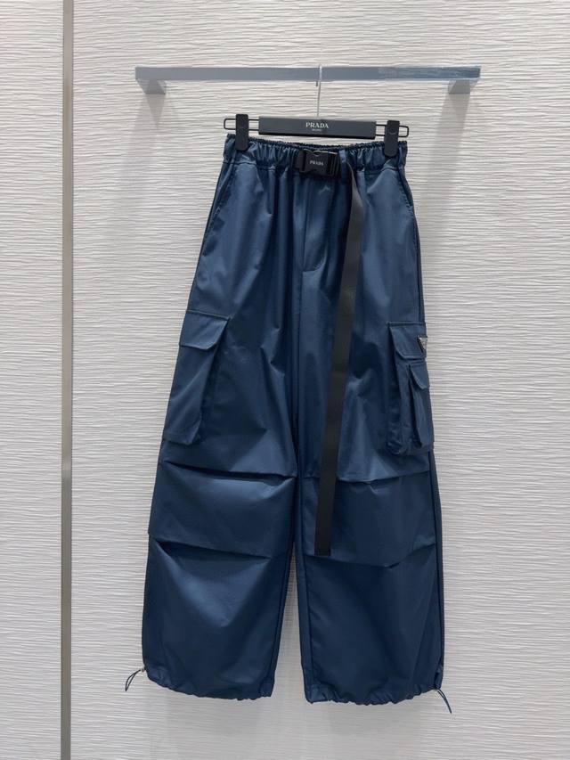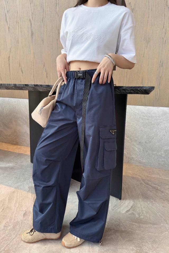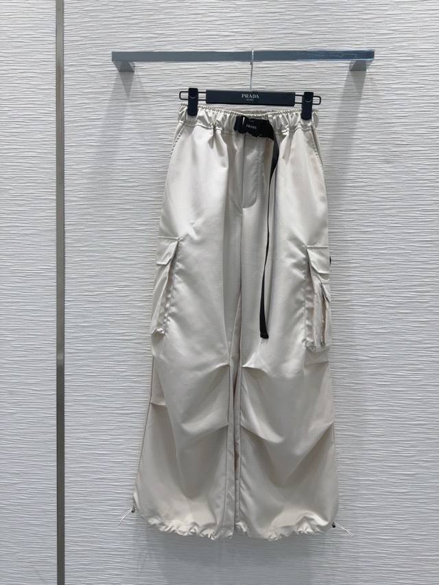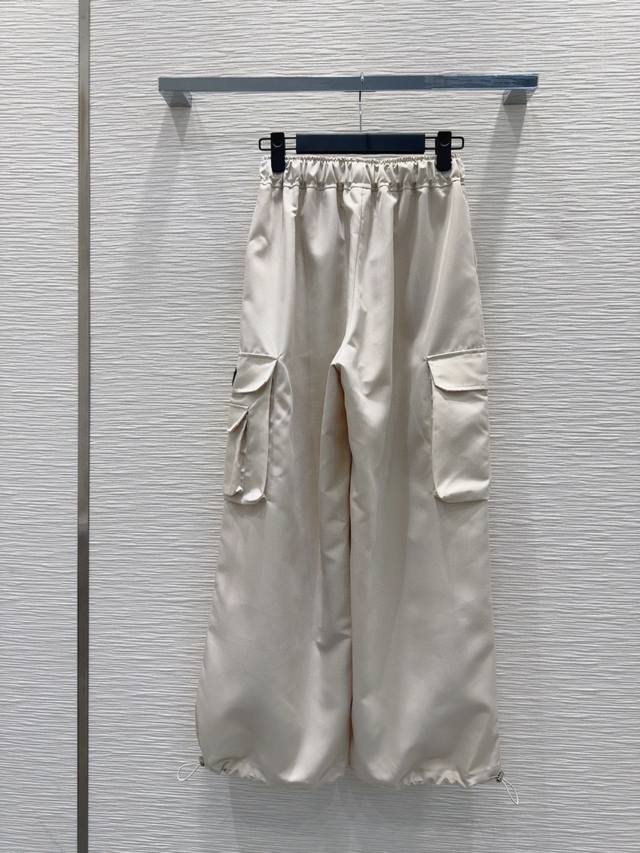 The snap belt at the waist adjusts the tightness. The three-dimensional large-capacity trouser pockets on both sides enhance the workwear feel and are embellished with a triangular metal logo to add a sense of layering~