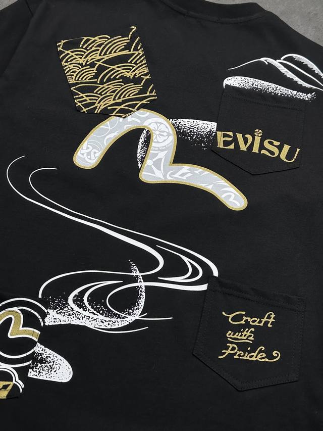 New Evisu Fukushen Daruma logo printed casual couple's short-sleeved T-shirt wit