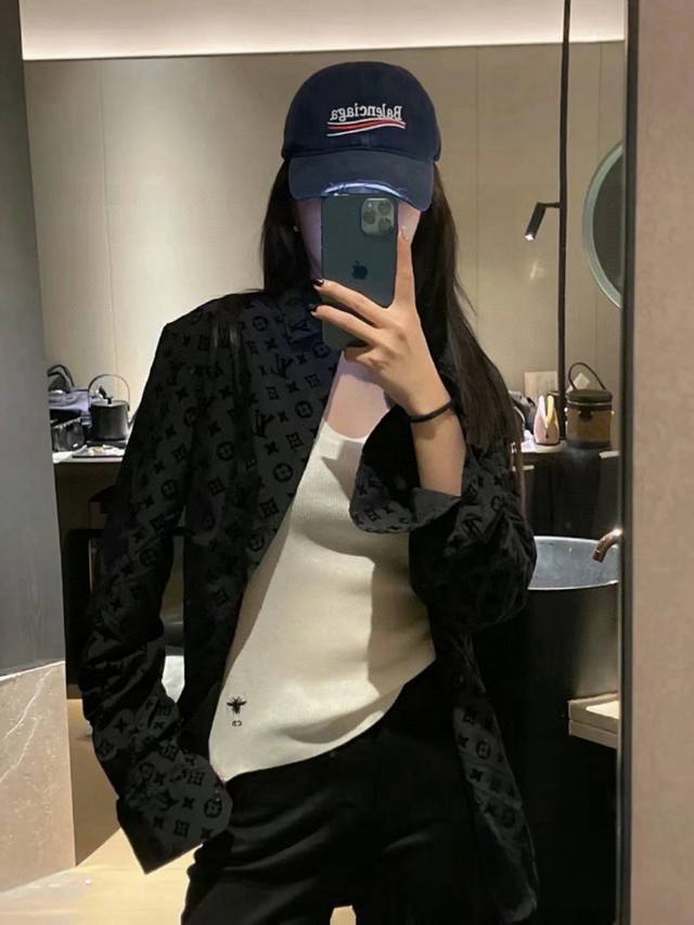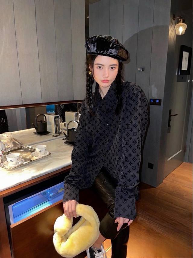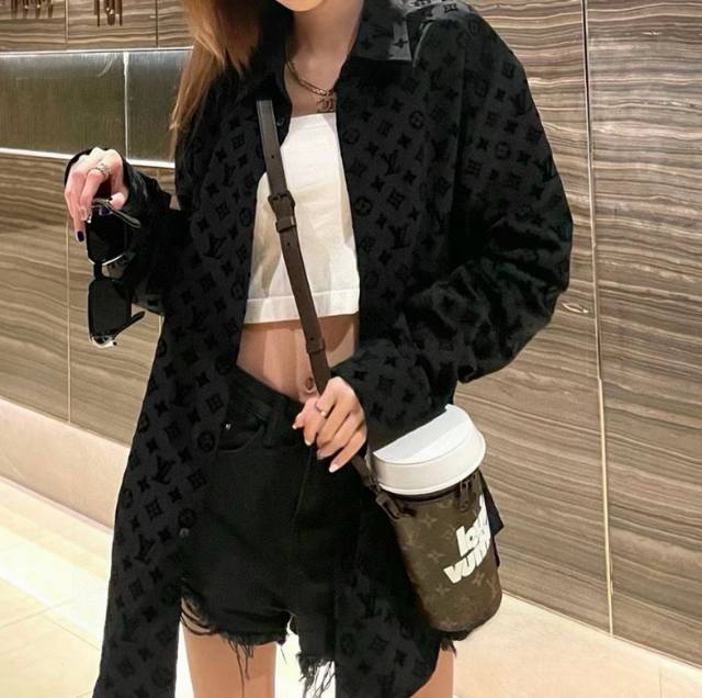 New Model: G207Louisvuitton LV jacquard all-over flocked casual long-sleeved shirt for both men and women. 1. The fabric is soft and comfortable, with an extremely delicate feel. It is firm, smooth, and soft, and has wrinkle-free properties for an unbeatable feel. The details are impeccably crafted. 1. This year's hottest all-over print elements exude a luxurious feel. Custom-made original flocked fabric incorporates the classic Louis Vuitton logo for a super premium feel! 3. Versatile and stylish, it's a stylish and stylish outfit. A classic style suitable for both men and women. Color: Black. Sizes: S, M, L, XL