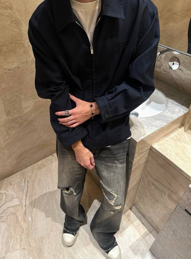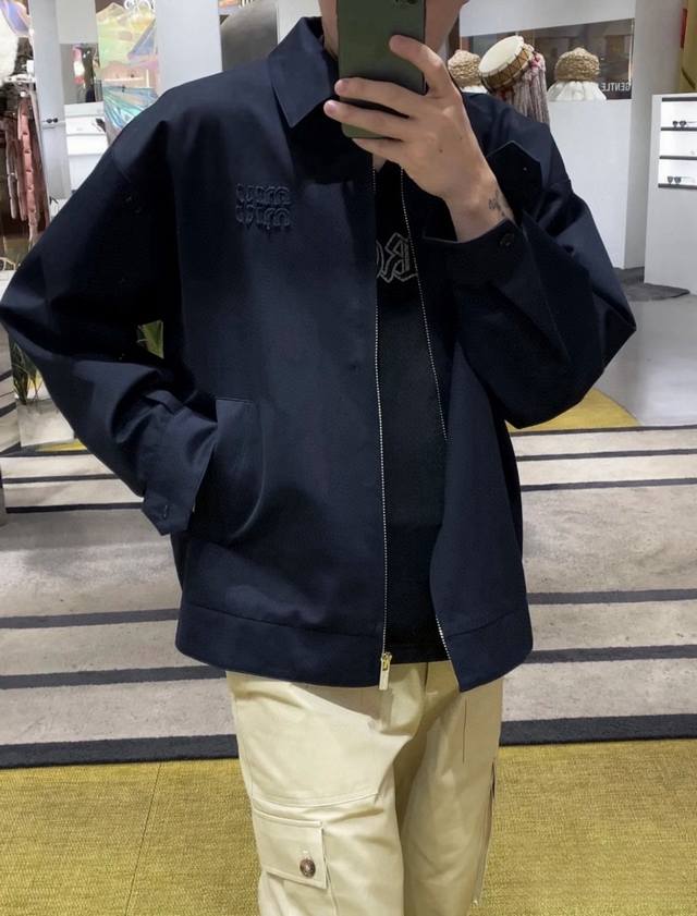 New model number: G208Miumiu Miu Miu new Paris show old money style patch lapel zipper executive jacket couple shirt jacket 1 Selected from high-quality original developed pure cotton fabric, with lining inside, the overall wearing effect is very soft and comfortable, 2 Perfect control of workmanship details, exquisite patch small label embroidery on the chest, lapel and zipper placket closure button cuffs and welt pocket design show details, highlighting personality! The version is simple but not simple! 3 Complete with tags and accessories, neutral design, a very versatile jacket for men and women! Color: Navy Blue Size: S, M, L, XL