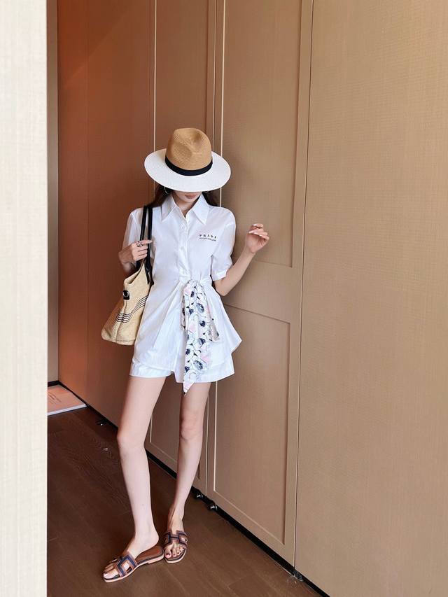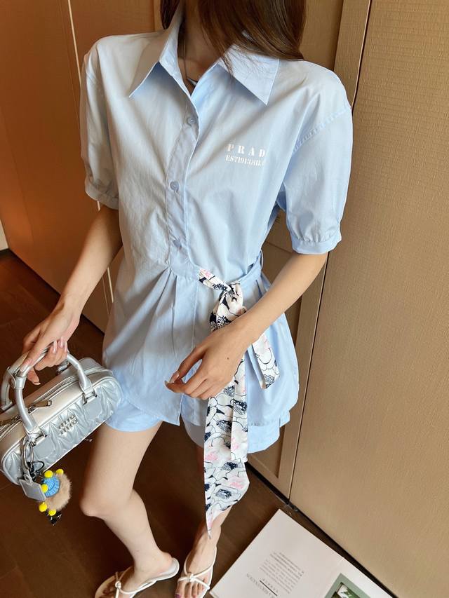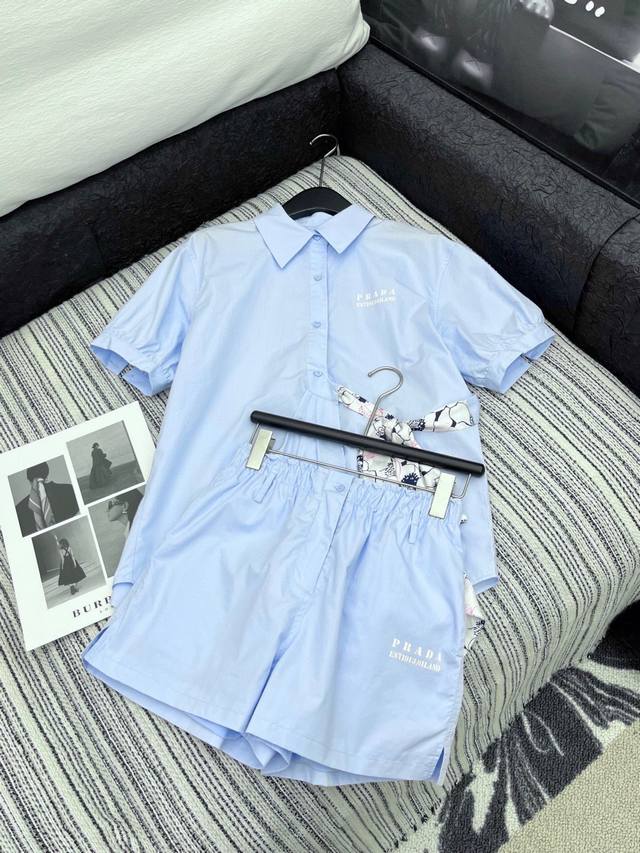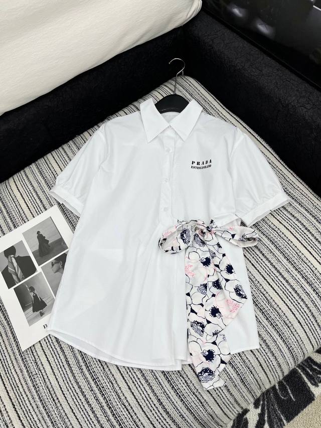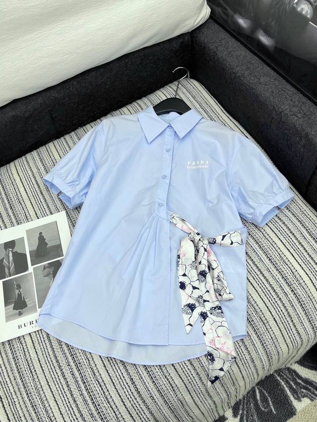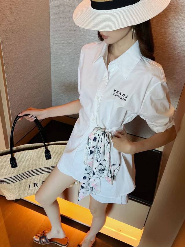 Prada* Prada palace-style short-sleeved shirt weaves a sweet poem with refreshing colors