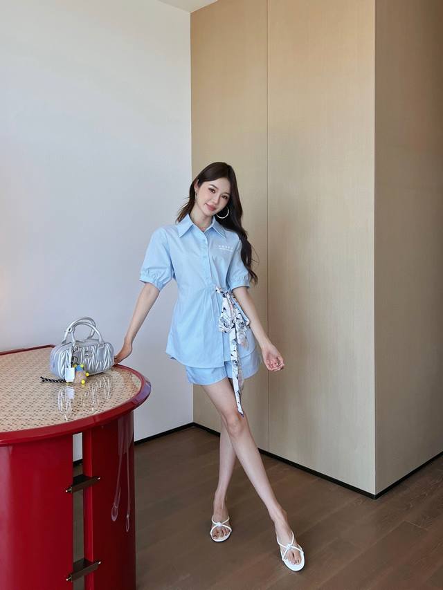 The puff sleeve design is like blooming petals, matched with a printed ribbon wrapped around the waist~