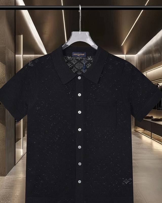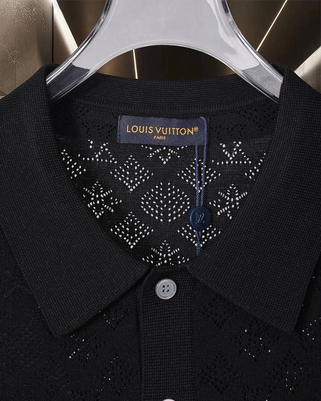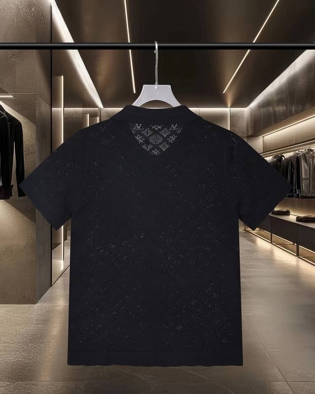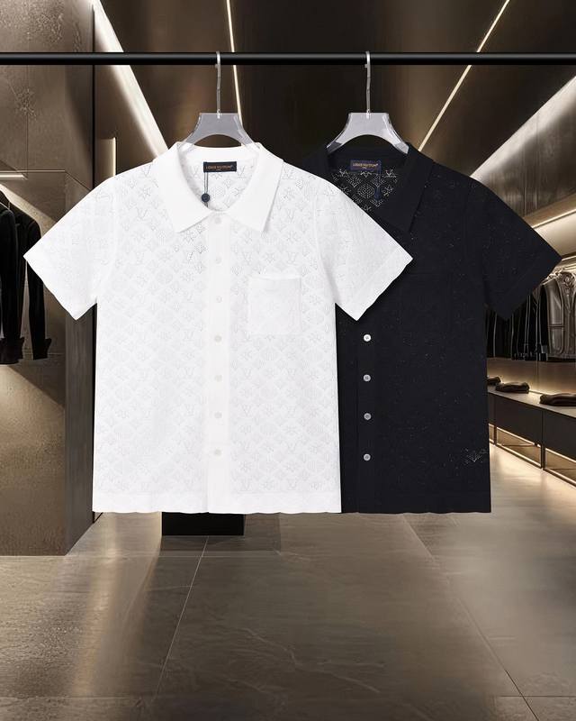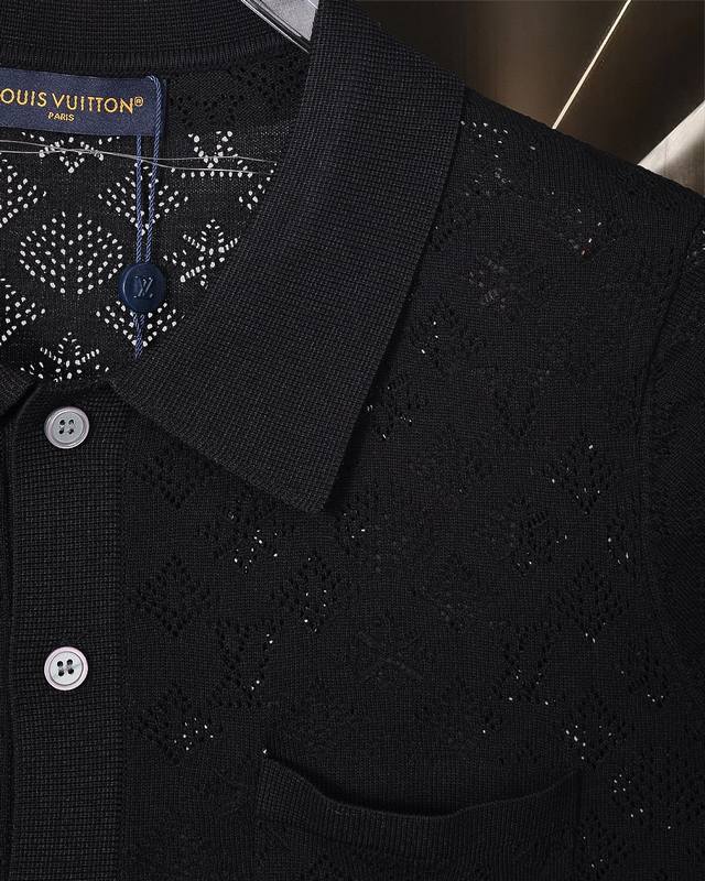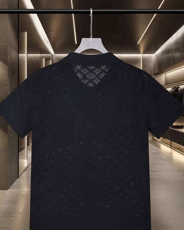 Next-Day Shipping Louis Vuitton Lv Hollow Monogram Logo Knitted Casual Short-Sleeved Polo Shirt 2025Ss Official Website New Original Fabric Official Polo Shirt Custom Mesh Sweater Knit Fabric High-End Version, Custom-Made Countertop Fabric for High Breathability and Comfort, Precision Crafted with Impeccable Details, Custom Logo Engraved Buttons, and All Three Labels Complete. Brand Elements Design Concept, Reflecting High Quality. Soft and Delicate Handfeel! Presenting a Casual Cut with a Stunning Upper Body Style; Available in Black and White. Sizes: M-Xxxl