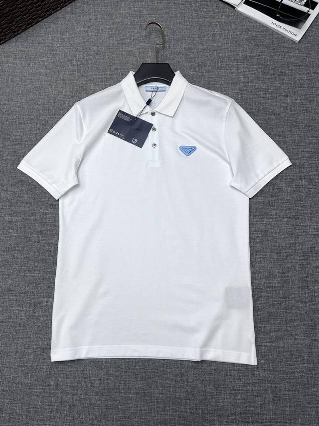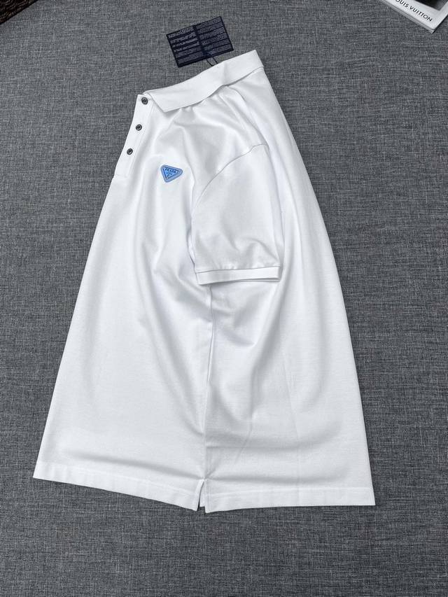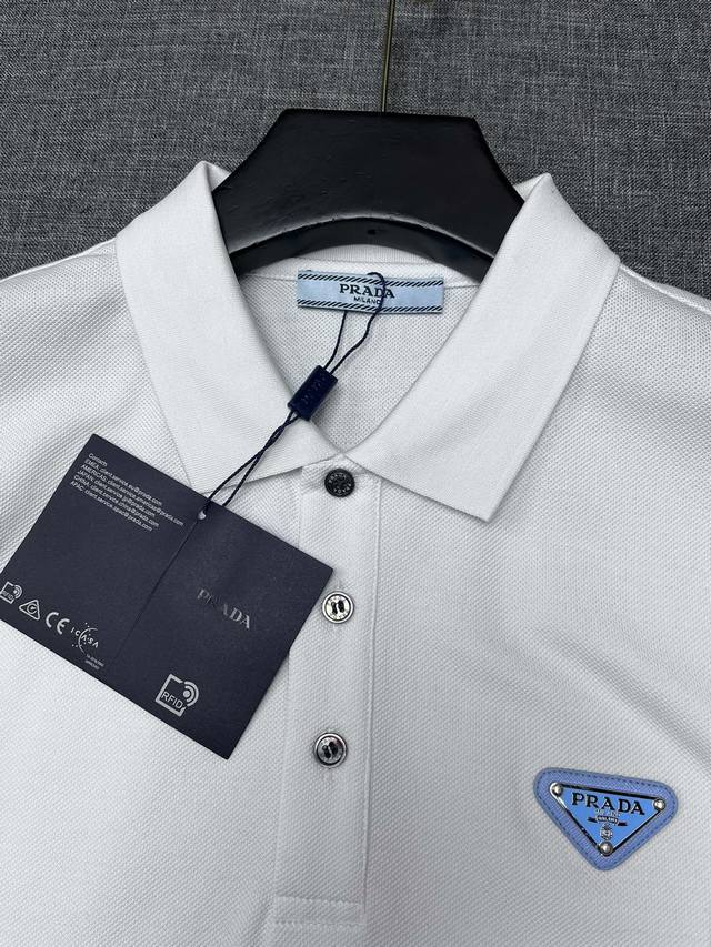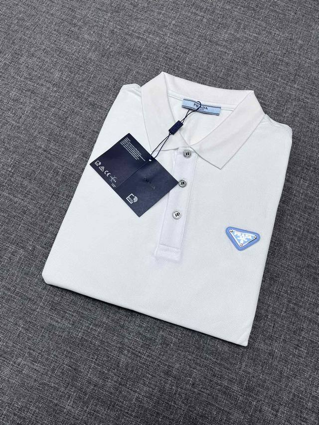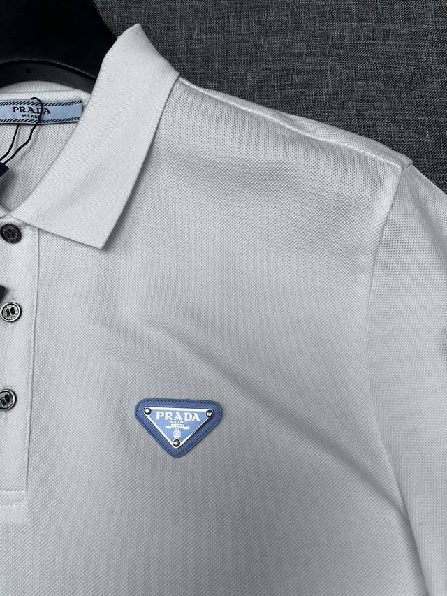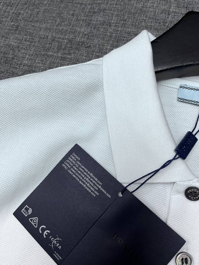 Prada 2025 Spring/Summer Classic Lapel Polo Shirt, available for order from Shenzhen Trading Company and at Lane Crawford in Hong Kong! This year's most iconic short-sleeved polo shirt, crafted from high-end, custom-made pique mesh cotton fabric, features the brand logo on the chest and unique decorative embellishments on the collar and cuffs. The unique design is minimalist and elegant, perfect for both business and casual wear. The details are meticulously crafted, perfectly reflected in natural light. With an exceptional sheen and delicate texture, a man's wardrobe must have these top-notch polo shirts! No need to be too serious; sizes A are highly recommended: S XXL.