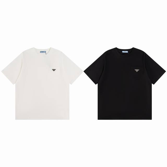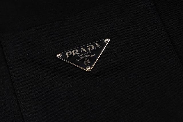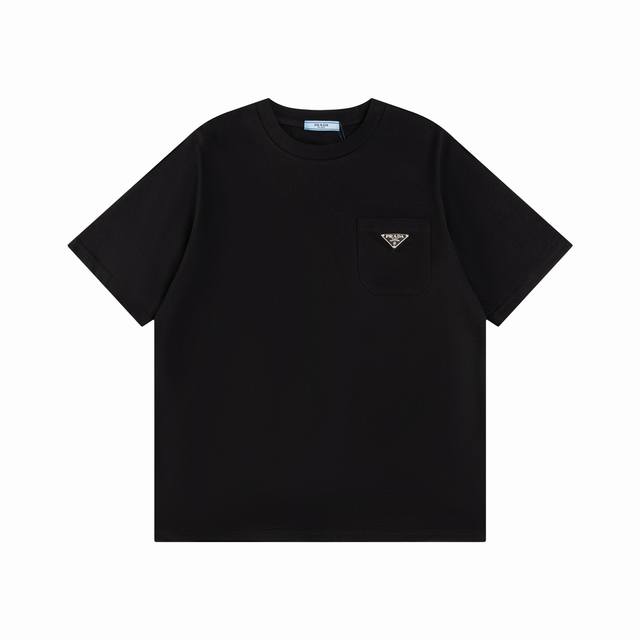 Prada 2025 Ss triangle logo pocket short-sleeved T-shirt. This is the market's t