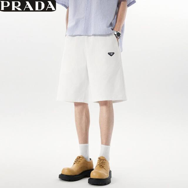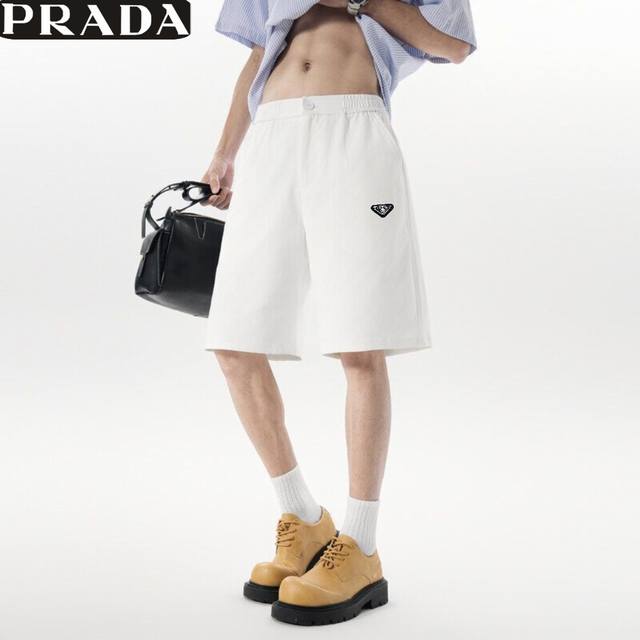 Prada 2025Fw Prada summer new style, simple and casual all-match white shorts for men and women, men's shorts!
