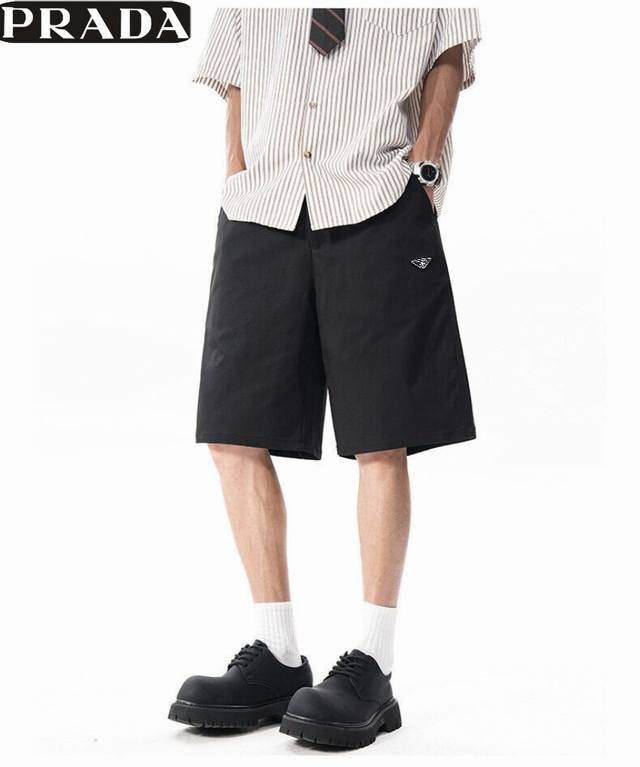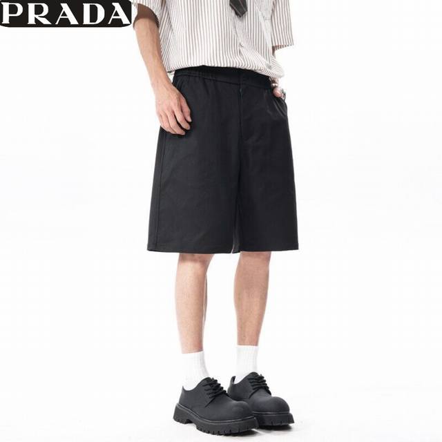Prada 2025 summer hit version selection fabric summer light and thin non-sweating fabric comfortable breathable elastic this summer must-have hot shorts black and white color classic durable easy to match custom Prada classic inverted triangle logo simple but not simple large factory workmanship three standard accessories complete men and women couples