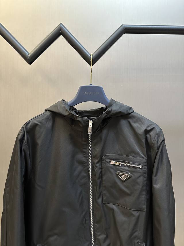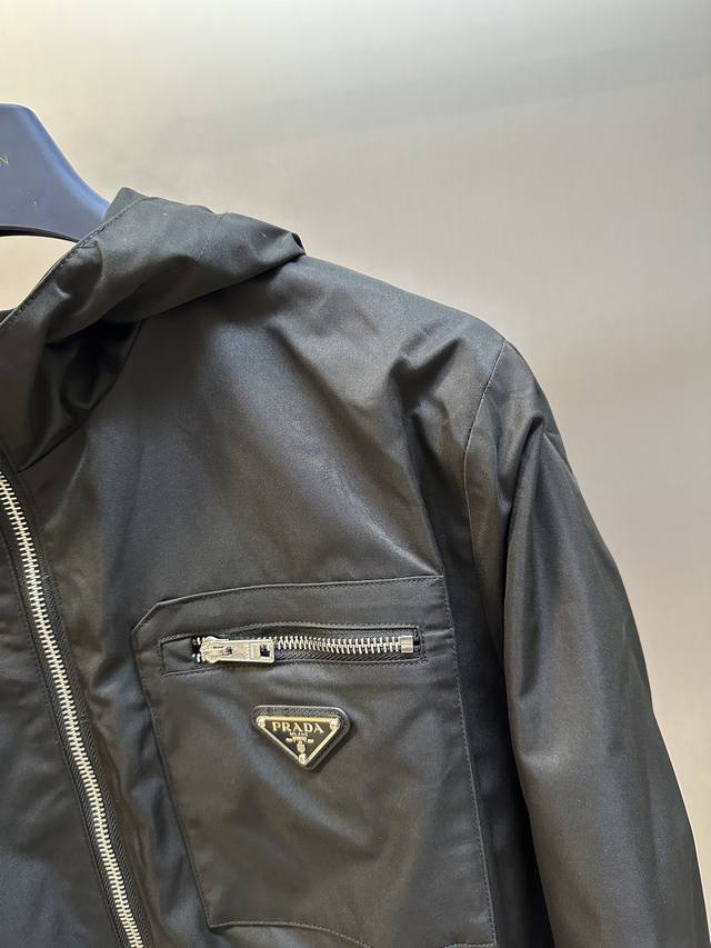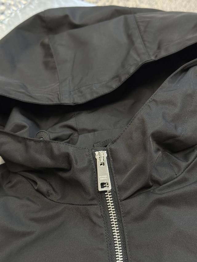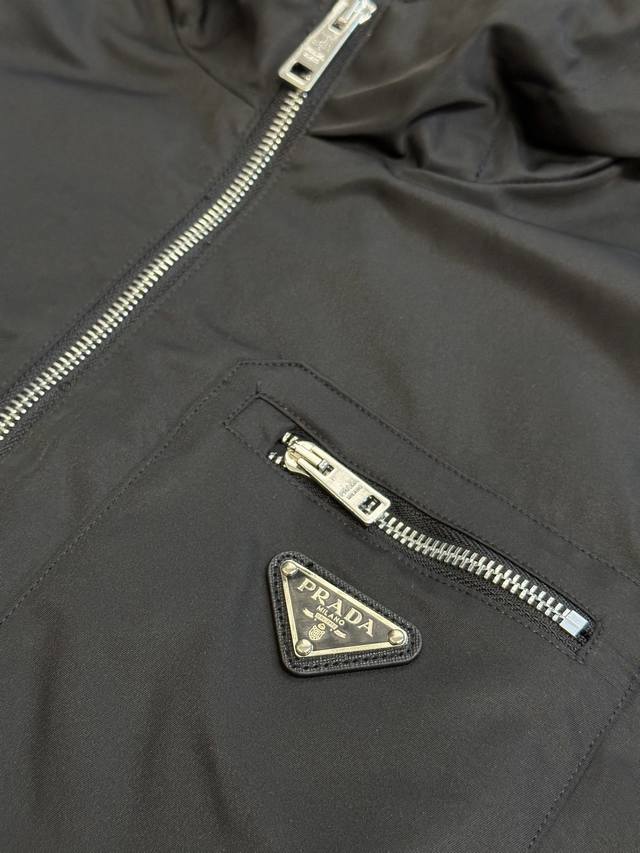 Prada triangle logo zipper hooded jacket, custom-made from elegant velvet twill