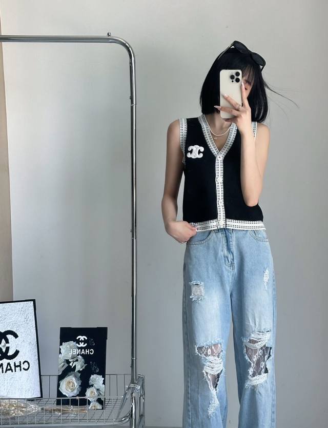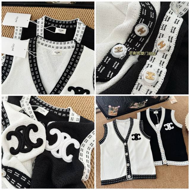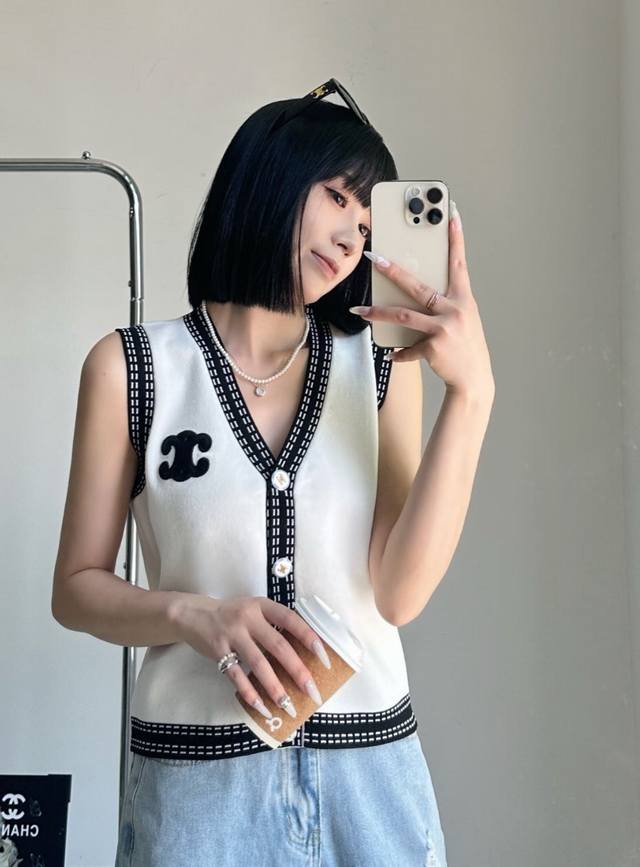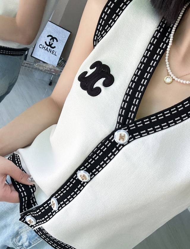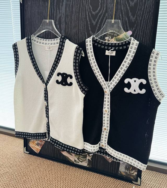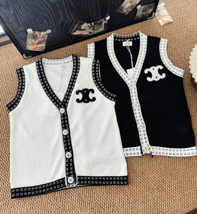Price P: Product Name: Celin* Arc de Triomphe Temperament Black and White Contrast V-neck Thin Knitted Vest Size: ML Color: Black and White Classic black and white color matching, a timeless fashion code. The V-neck design is super intimate, perfectly modifying the neck line, instantly giving you the illusion of a swan neck. The black and white plaid edging on the neckline, cuffs and hem is exquisite, and every detail speaks of high-end taste. The iconic Arc de Triomphe Logo is exquisite and three-dimensional, and it is an eye-catching highlight that you will love at first sight~ Korean girls quickly copy the homework and go out beautifully together! Size chart M Shoulder width is not limited to bust 80 Length 46L Shoulder width is not limited to bust 82 Length 47 Manual measurement error 1-2Cm