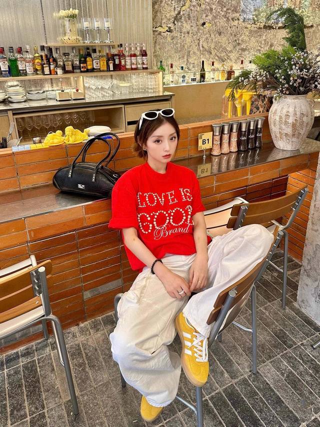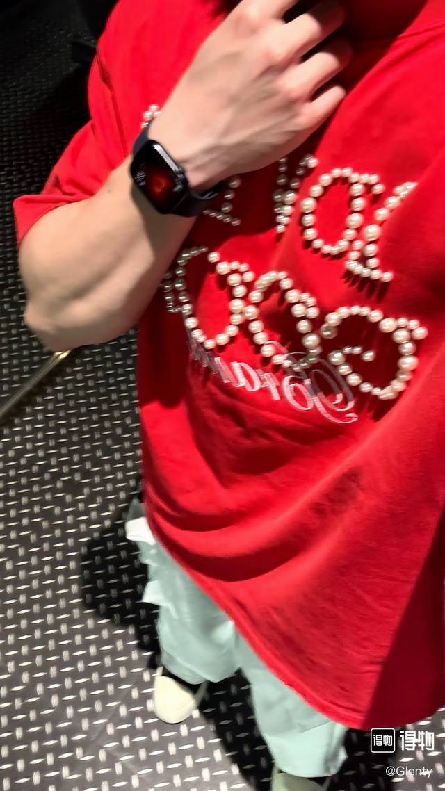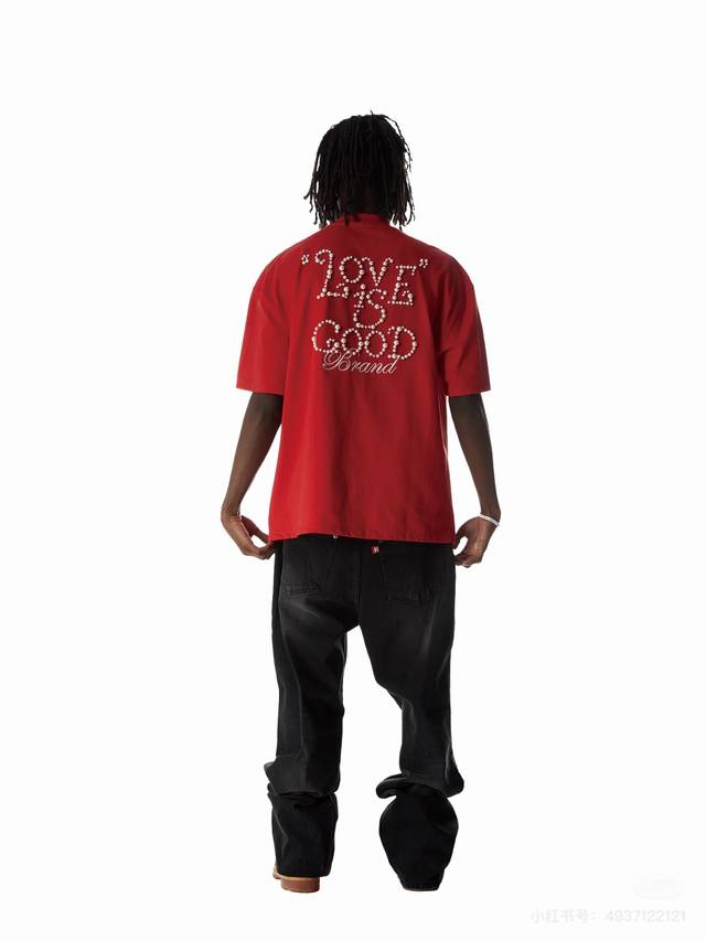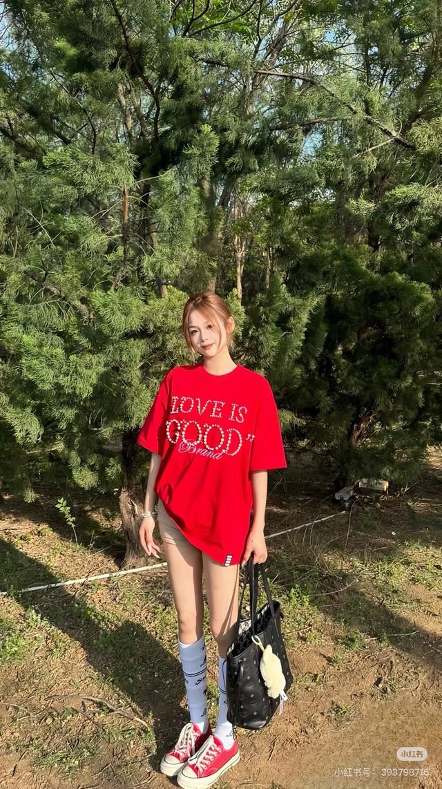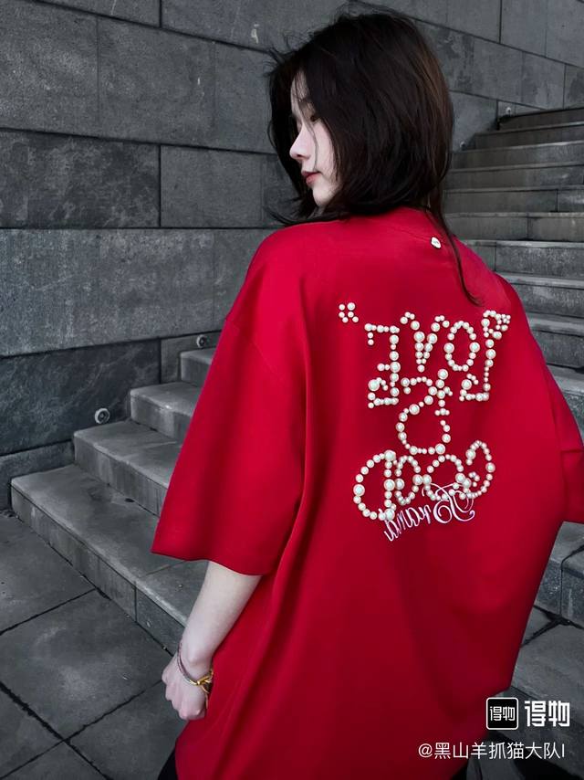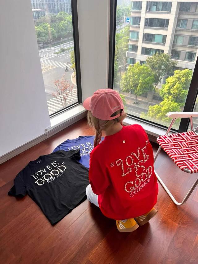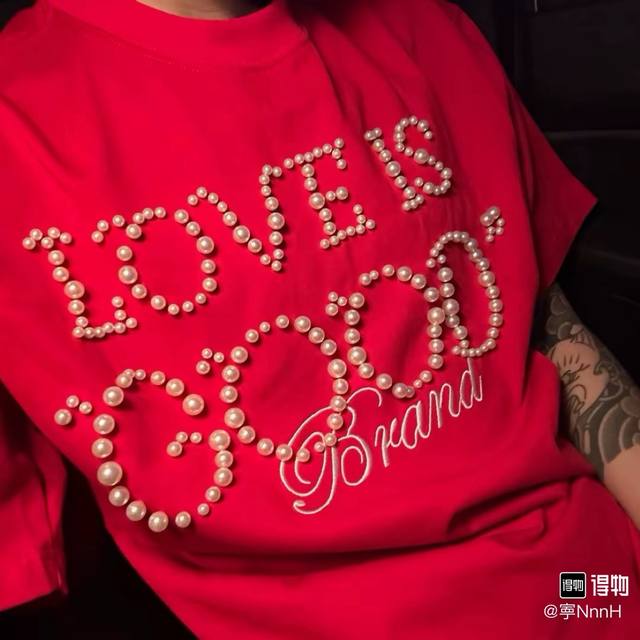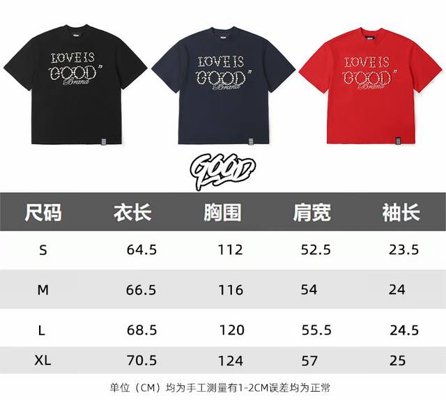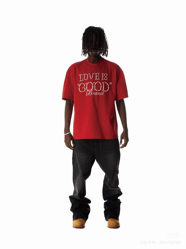 Red model picture Top quality, assured comparison, custom packaging bag Goodbrand 25Ss pearl embroidery heavyweight short-sleeved T-shirt Yb one-to-one development % cotton uses custom color custom dyed terry pure cotton clothing surface, 320G double-strand B1134 double yarn, comfortable feel Made of imported knitted needle-combed cotton, matched with 320G1*1 thread, no color difference in the same cylinder, the overall thickness is moderate, with drape and contour shape, the upper body is comfortable! ! It is very tolerant to slightly fat body types, and you will lose 5 pounds instantly when you put it on! The front panel uses imported silicone thick embossed logo, and the middle space uses colored gem hot diamonds, which greatly increases the fun of the clothing and unique visual effects. This version has been repeatedly scrutinized for a long time and presents an extremely high standard of ready-to-wear clothing . The fabric surface is clean, the fabric texture is clear, the feel is tight and stiff, and the color fastness is high, no deformation or discoloration. Custom thread accessories are matched and matched. Must-have for couples. Color: black, red, navy blue Size: SML Xl