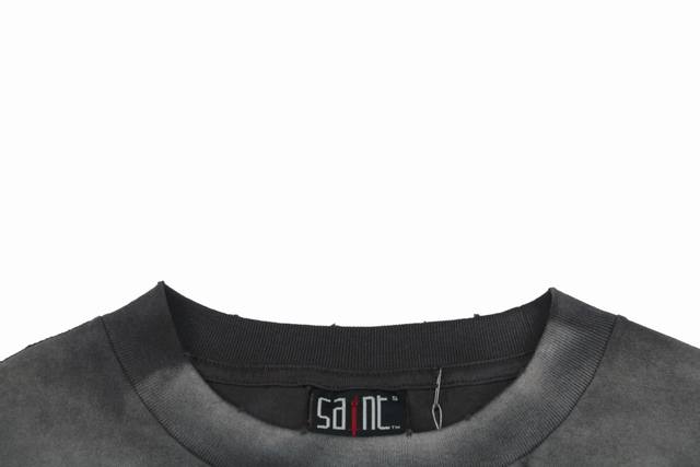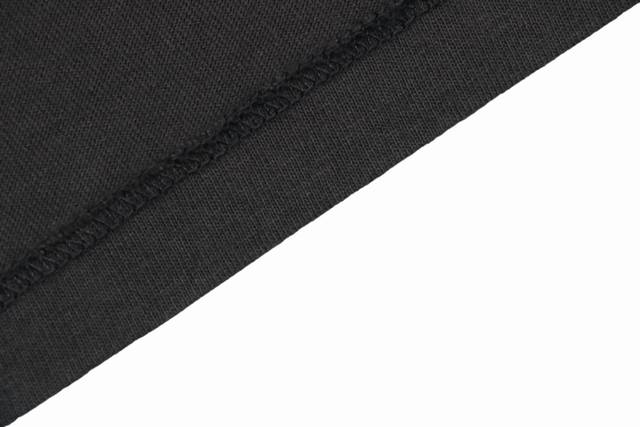 The overall fabric is made of 100% cotton 16-woven double yarn jersey fabric, cylindrical side-seam-free fabric, and the thread is 300G100% cotton 1*1 elastic rootless thread. The fabric weight increases to about grams after garment washing. A special circular machine is used to weft-knit into tubular garment pieces. A computer program is designed in advance to weave tubular garment pieces. The finished product has no side seams, the craftsmanship is more beautiful, and the upper body is less tight. Asut garment piece dyeing can wash out a nostalgic feeling, and the bone position effect is obvious. The whole process uses environmentally friendly dyes, which is more expensive. The whole piece of spray horse monkey fading uses potassium permanganate solution to spray on the clothes, which fades evenly through chemical reactions to produce a frosty white effect. The spray horse monkey fades more evenly and the fading degree can be controlled Degree, suitable for creating a retro style, the ready-made garment uses a spray-on gradient distressing, the local fading effect is significant, showing a high street feel, enhancing the distressing effect, the collar and cuffs are worn out + multiple hanging and worn out by hand, the printing is made by imported high-nozzle direct-injection machine digital direct-injection printing, the overall color is rich, and the color separation accurately presents the printing effect, but the printing is not solid printing, the color of the fabric can be seen through the printing, and the white transparent protective paste is covered on the top to protect the printing from falling off. The small font next to the printing is clear and not blurred, and the cuffs and hems are sewn using retro single-line foot-locking technology. A full set of accessories for the custom hang tag is complete, with a little angel anti-counterfeiting label, and the outer packaging sticker coding is all synchronized in place