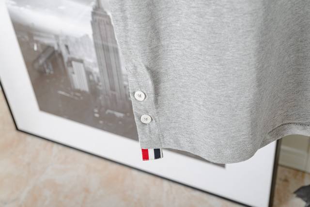 Tb front side webbing label pure cotton double yarn double strand round neck pullover summer short sleeve T-shirt