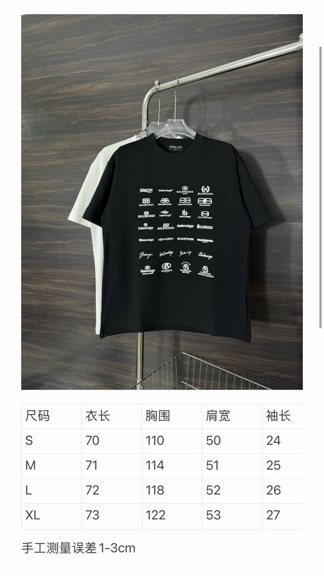 Special offer: Black Sm, White L Xl. No returns or exchanges. Model number: He242. Balenciaga. Round neck short sleeves with full front and back logo patterns. Made of 280g double-strand double-yarn pure cotton fabric, comfortable and soft to the touch, comfortable and breathable upper body. The neckline uses the same cylinder and color ribbing, which is not tight and does not deform. The front and back prints are made of imported glue. It brings together various Paris trademarks to highlight the characteristics of the clothes. It is made by a large factory, original and original, with three complete labels. It has an OS loose version. You can buy it with confidence. It can wear up to 200 pounds. Color: Black White Size: S M L Xl