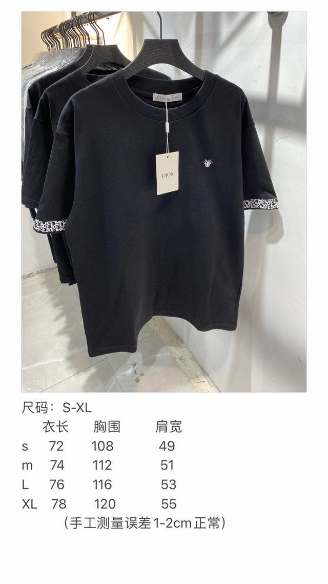 Special offer, full size, special price, no returns or exchanges. Model number: Zmr64 Dior classic small logo embroidery sleeves and all-over logo print short-sleeved T-shirt. Authentic 2g pure cotton double sanded fabric. All fabrics have been pre-shrunk. Quality is first-class. What you see is what you get. The pattern will not change after one wash. Differentiate between some disposable clothes in the market. Three labels are fully packaged. All are original and restored to order. Unisex style, versatile and classic. The pattern is very unique. Color: Black. Size: S-Xl Figure 9 Size Chart