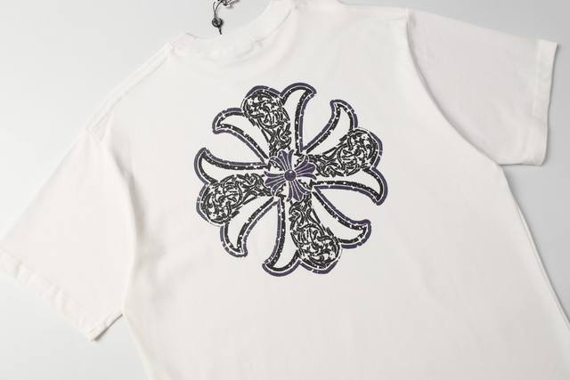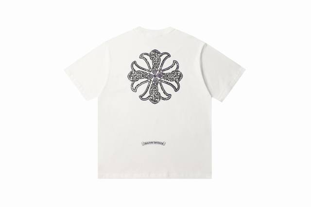 Chrome Heart Heavy Industry Sanskrit cross short-sleeved T-shirt Loose version High-density knitted fabric, 240g double yarn, 1*1 double yarn thread, soft and comfortable to the touch, dot printing suede pulping process, full of three-dimensional sense, soft and comfortable to the touch, no deformation, loose version, same style for men and women