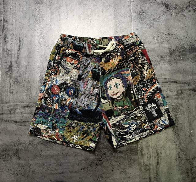Stussy ethnic knitted jacquard retro casual couple shorts