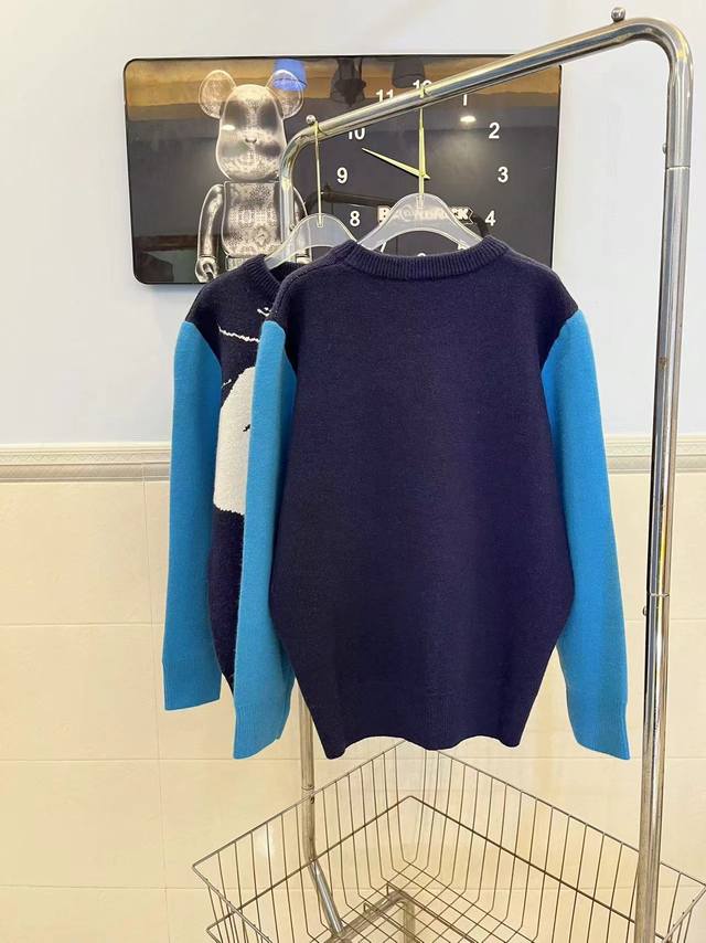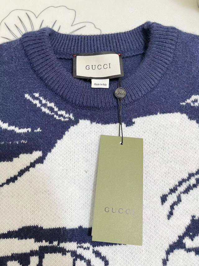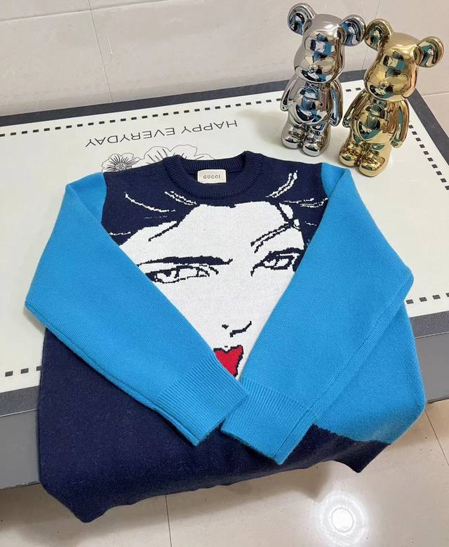 Style 0015 Gucci artist collaboration face pullover round neck long-sleeved sweater. Classic OST cut design, unique ingenuity and fashionable. Detailed workmanship is 1:1 with the official website. It feels super comfortable to the touch and has super detailed workmanship. Loose fit. Unisex style. High version is free to compare. Color: Blue Size: SM Lxl