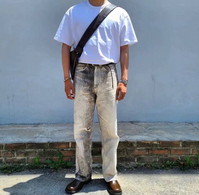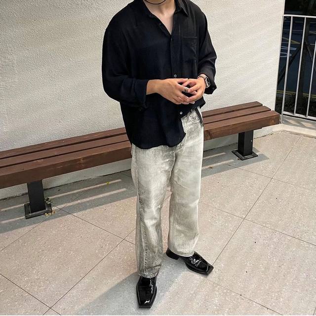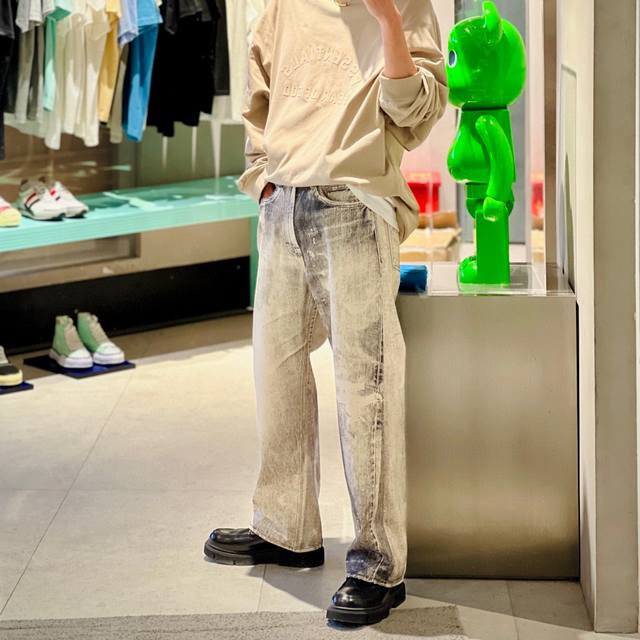 Style 6036 Our Legacy Grey Digital Print Straight Jeans Washed and distressed lo