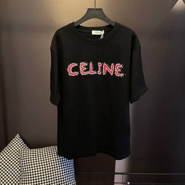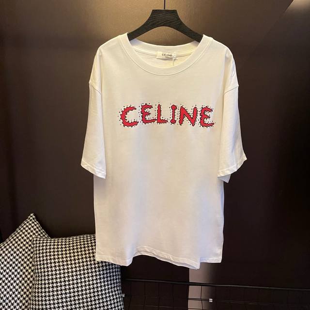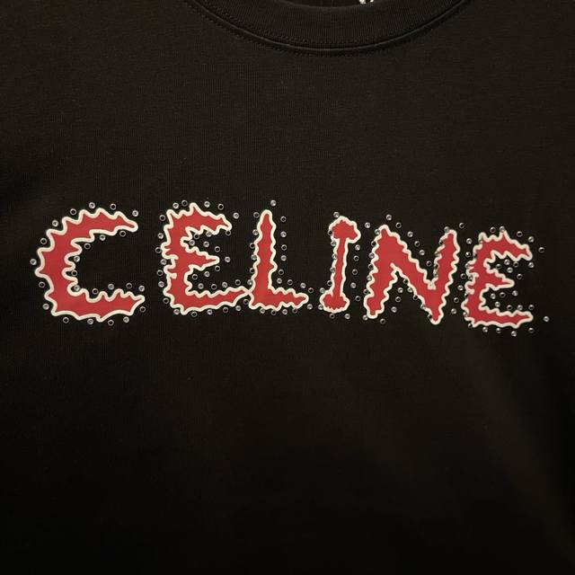 Style: M011 Celine's basic short-sleeved T-shirt with a studded letter print. Th