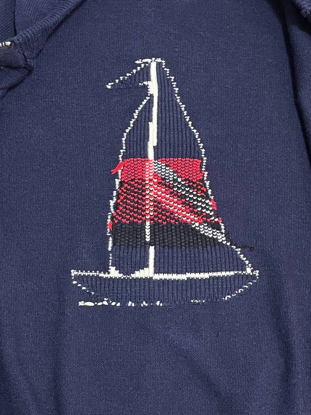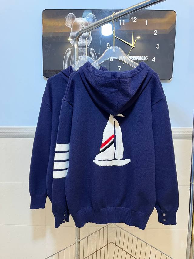 Style No. 0069 Top version Sstb Fw back sailboat wool zipper hoodie Stoll imported woven 357 needle type high weave high density color spun all-wool material yarn, 7-ply parallel line woven style according to the original one-to-one single-sided plus one by one thread, the whole piece is made of Australian wool, matching color style, features light weight, soft skin-friendly and strong warmth retention. High version can be compared at will. Three complete sizes: SML XL Color: Blue