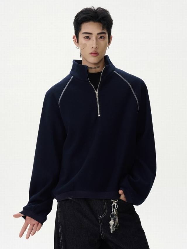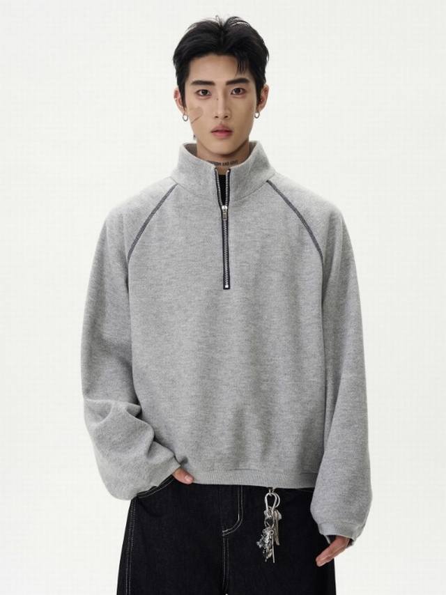 Style No. 867 Half-zipper reverse bone design pullover stand collar sweatshirt is a must-have item for spring. It is a versatile item for couples and men and women. 380G fabric is high quality and comfortable to wear. Good color, gray and navy blue. Sizes M-3Xl