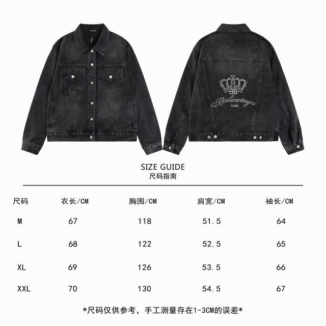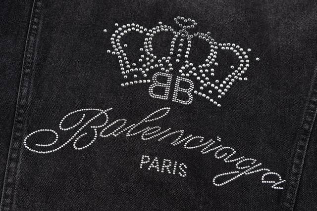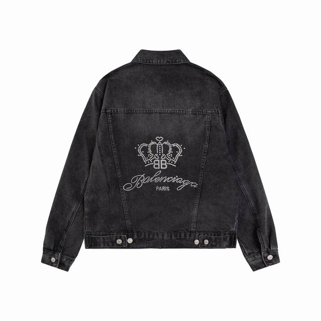 Style No. N09 Balenciaga classic style old denim jacket with crown rhinestones o