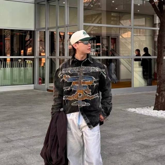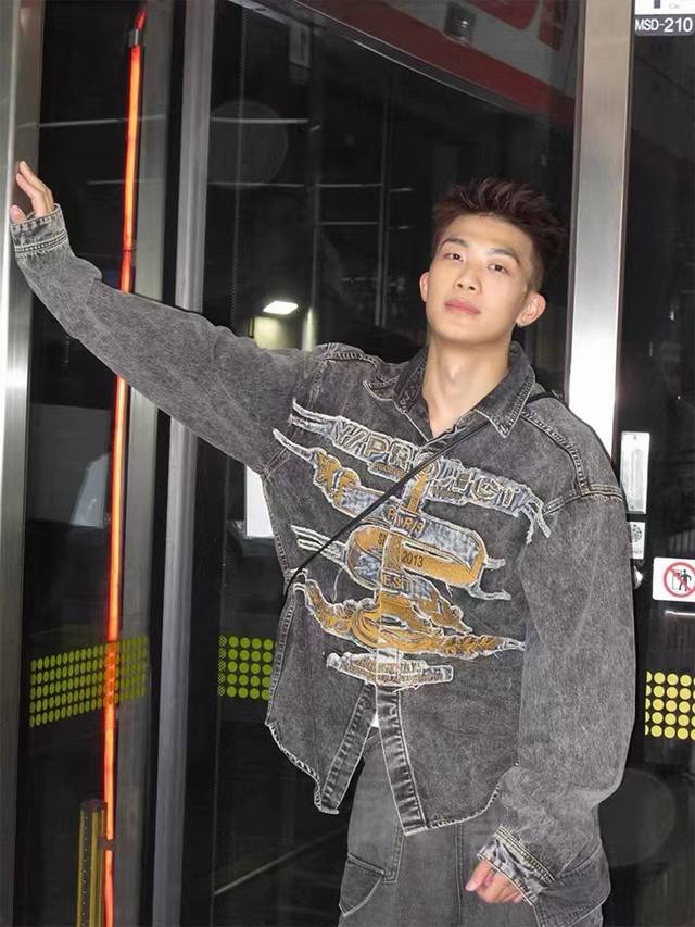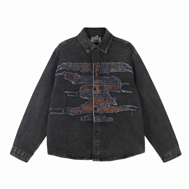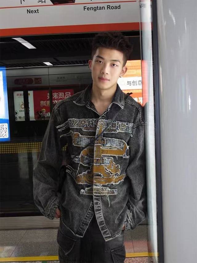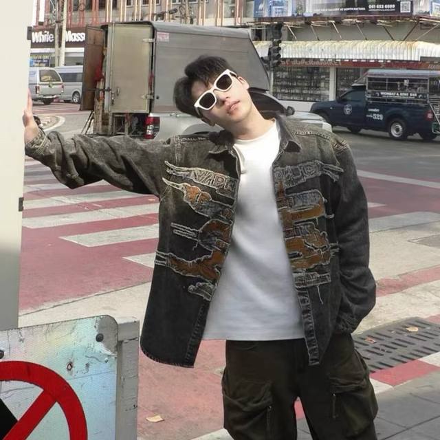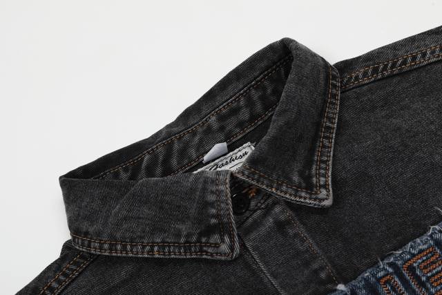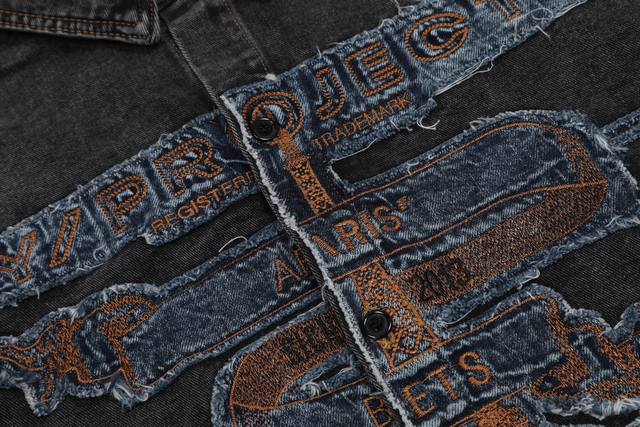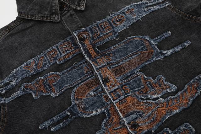 Style No. - Y Project Distressed Washed Patch Embroidered Denim Jacket Stand Col