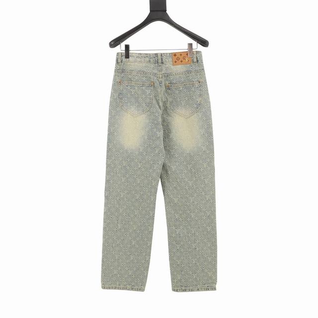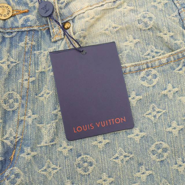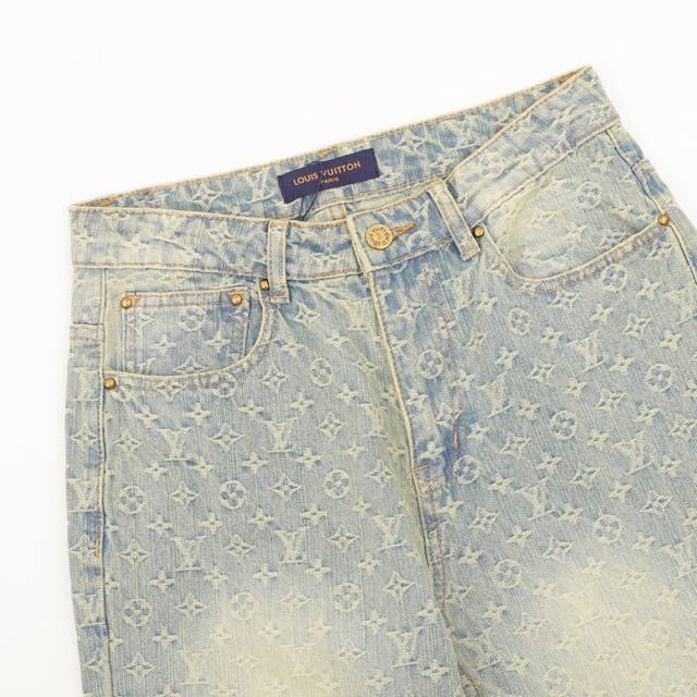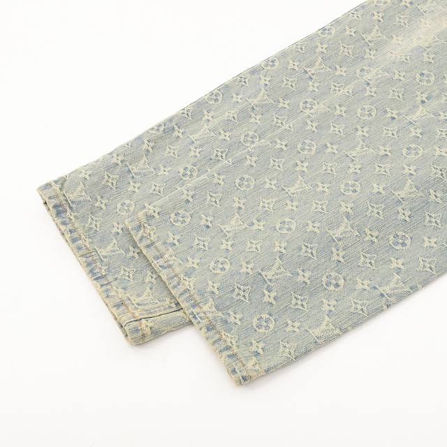 Style No. Y852 Louis Vuitton monogram denim trousers. The classic Mon*M and Giant Damier patterns are connected by wavy lines, and the modern style is overflowing with visible stitching. The distressed hardware buttons and chains are customized and made of custom jacquard denim fabric. This fabric is very exquisite. It is washed four times with high difficulty and feels as good as the countertop. The fabric quality is obvious at a glance. The jacquard detail is impeccable, and every detail is perfectly outlined. The three-dimensional deconstructed cutting and splicing design has a fit and capable style, which is very handsome for both men and women. Size: 28-34