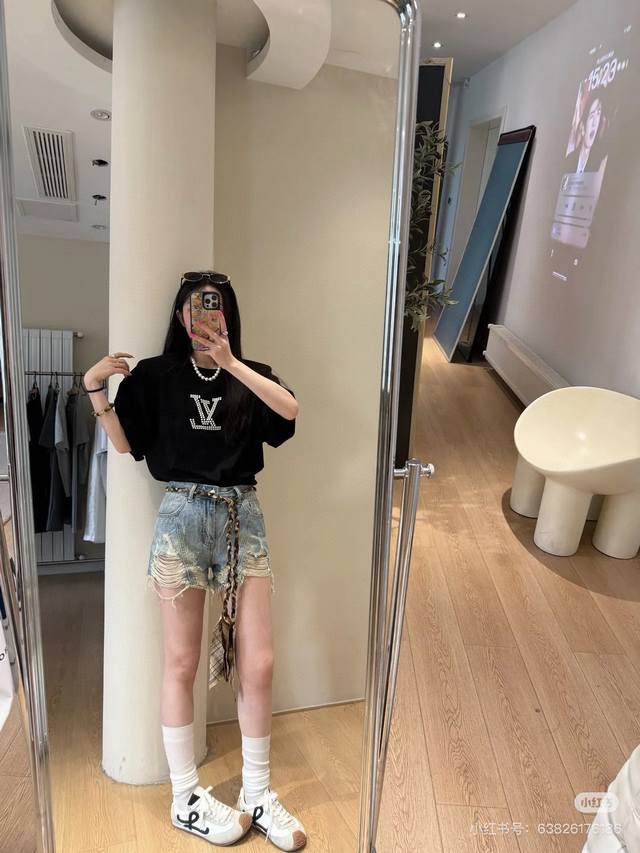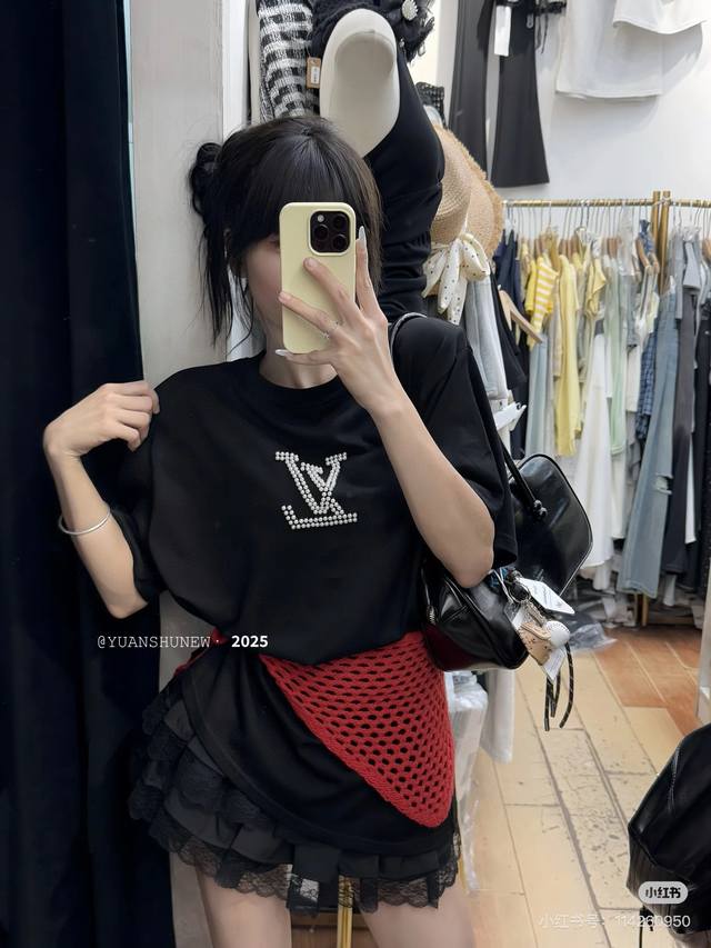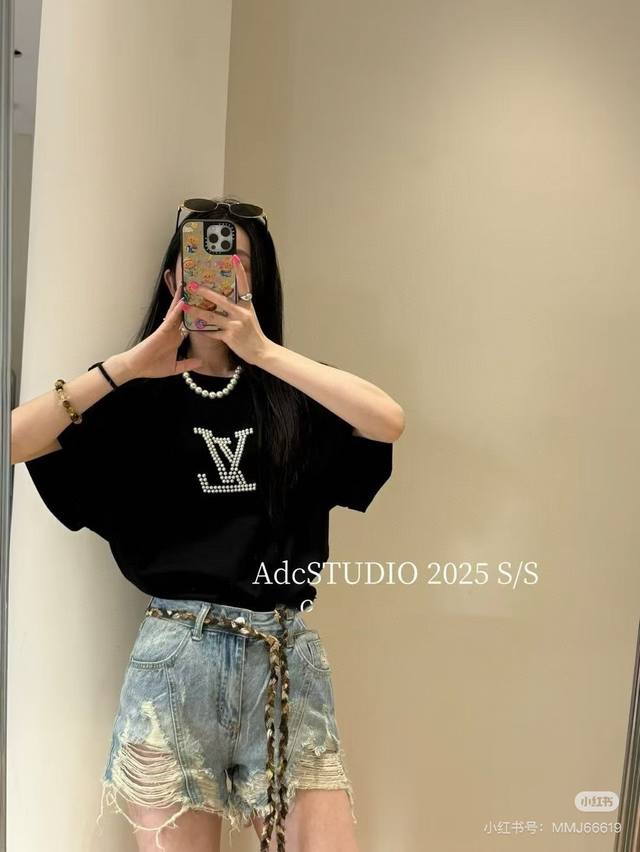 Style No.: Zmr100# Lv Louis Vuitton pearl foamed beads couple short-sleeved T-sh