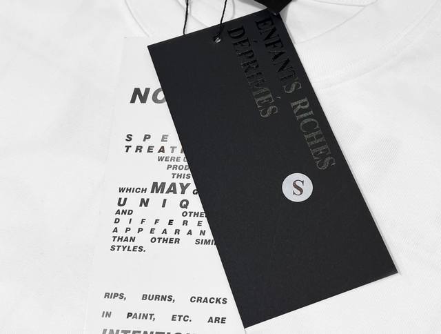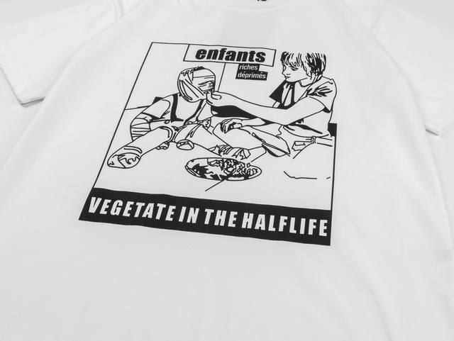 style number 470. Wearing this year's "Rich Second Generation" will surely make you rich! This Erdenfants Riches Deprimes short-sleeved sweatshirt features a melancholic, "Injured Boy" print. Made from custom-woven 250G, 32-count, double-strand, double-yarn cotton, it boasts a tight, abrasion-resistant construction. This high-quality fabric creates a stiff, structured look, unlike the soft, shapeless, and slouchy look of standard cotton. All visible seams are double-stitched throughout. The webbing at the back collar extends to the shoulders for reinforcement, and the connection between the well and the shoulder is detailed with reverse stitching for a seamless transition. The fit is fantastic! A must-have summer piece! It comes fully custom-made with original trims, hangtags, wash wash, main label, and custom details. The unique, laid-back silhouette is incredibly casual and effortlessly stylish. It's a versatile spring/summer essential for streetwear, and I highly recommend it! Sizes: S M L X L Color: White