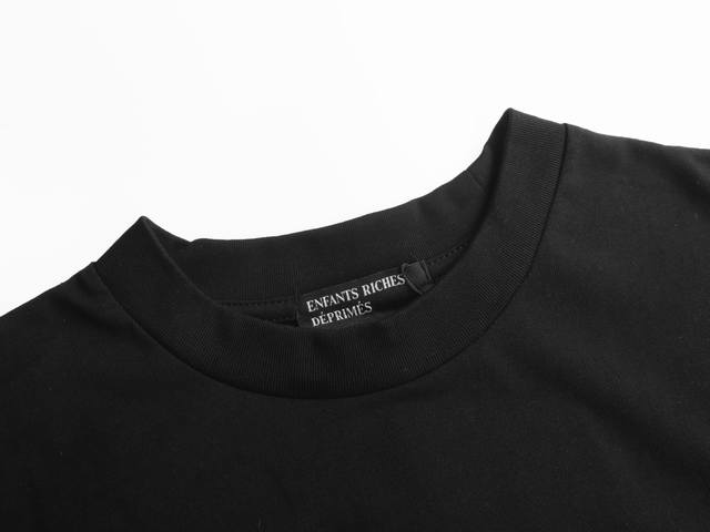 style number 510. This year, wearing this "Rich Second Generation" outfit will surely make you rich! Enfants Riches Deprimes, a melancholic "Rich Second Generation" raglan style, 25Ss runway style, features a baby portrait print short-sleeved design. Made from custom-woven 250G, 32-count, double-strand, double-yarn cotton, this tight, abrasion-resistant fabric boasts a firm, rigid fit, unlike the soft, shapeless, and sparse cotton found on the market. All visible seams are double-stitched throughout. The back collar webbing extends to the shoulders for reinforcement, and the connection between the collar and shoulder is detailed with reverse stitching for a seamless transition. The fit is fantastic! A must-have summer piece! It comes fully custom-made with original trims, hangtags, wash wash, main label, and custom details. The unique, relaxed silhouette is incredibly casual and effortlessly stylish, making it a versatile spring and summer essential for streetwear. Highly recommended! Sizes: S M L XL Color: Black