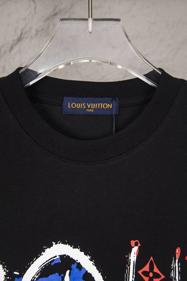 style number M032, special offer, no returns or exchanges. This Louis Vuitton 2025S crew neck T-shirt is made of 280g 36s active eco-friendly fabric, custom-woven and dyed in the same vat, featuring original, identical color threads. Printed using 3D digital direct printing technology, a full set of custom accessories, and top-quality lining with hemming and tape. Colors: black and white. Sizes S-XL.