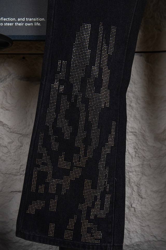 Style number: M210 No returns or exchanges will be accepted once the back pocket label is removed. Top-quality foreign trade orders. Purple Brand hot-drilled pattern flared jeans. Unisex jeans. Accessories: Complete accessories, all in original packaging, two hang tags and two labels on the back pocket, different from the low-end versions outside, hardware and buckles are all matched, authentic original with logo, aluminum alloy buckle, authentic print inside the jeans pocket, every detail beats any version on the market. Fabric: authentic pattern-matched, authentic custom imported fabric uses a unique washing and dyeing method, and is individually hand-painted to make ripped and slightly stretchy jeans. Sizes: 28 30 32 34 36
