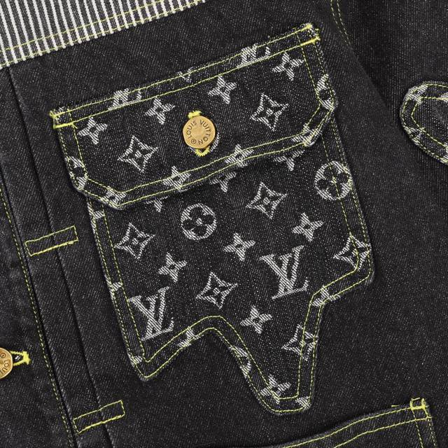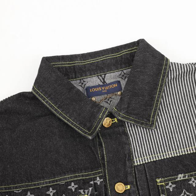 Style number Y853 Louis Vutton patchwork contrast washed denim jacket. This jacket features contrast stitching and wavy details. The exposed stitching features a wave-like detail. The hardware is fully customized, recreating the original four-piece washed denim, unlike the three-piece, non-matched washed denim on the market. The decorative contrast denim panels are set against a full-length Monogram pattern. The silhouette is truly stunning! Jacquard fly stitch craftsmanship and fully hand-positioned cutting are used! Each piece requires a significant amount of fabric, as each piece is hand-cut and aligned horizontally and vertically! This is extremely time-consuming and material-intensive! YB disassembled hardware and accessories! Distressed brass buckles! Bright yellow contrast stitching adds a three-dimensional touch to the entire piece! It looks amazing on the body! A must-have for early spring! Available for both men and women! Sizes: XS-L 46 48 50 52