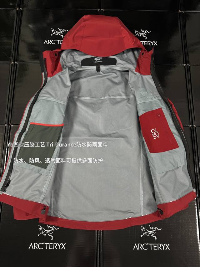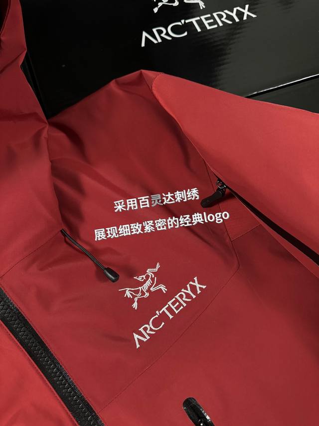 tabs, and Zip-In compatibility. The Arc'Teryx logo is machine-embroidered on the