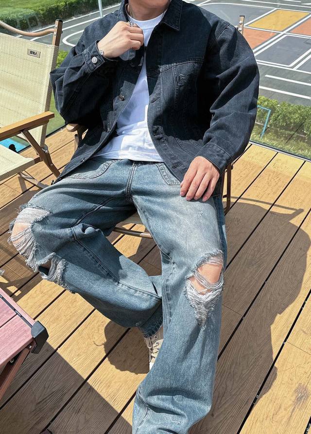 The Croco denim distressed washed jacket with a high order rate has three-dimens