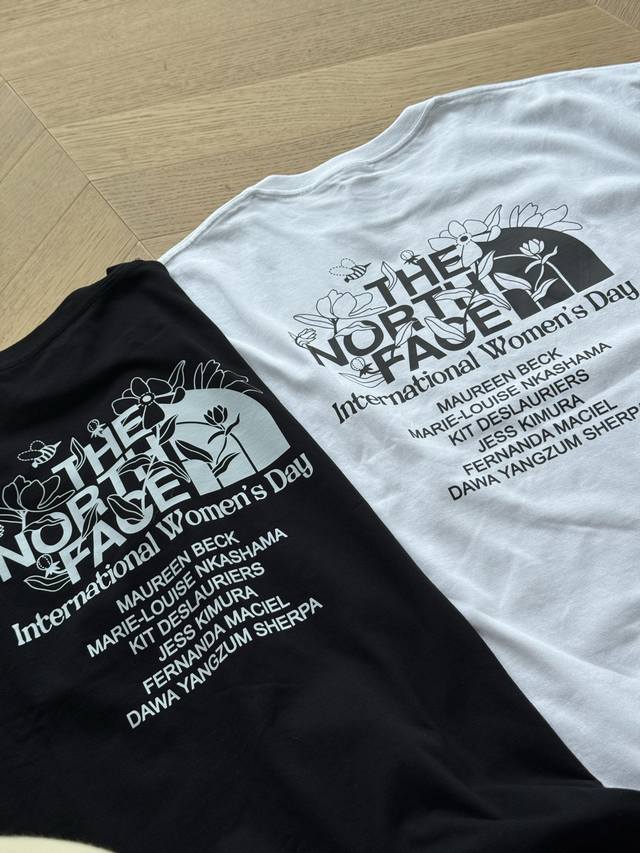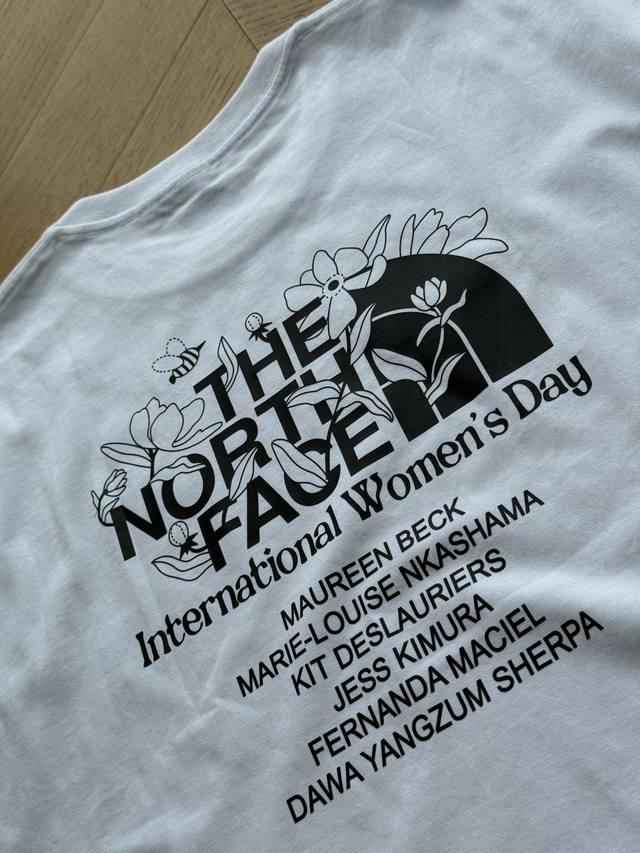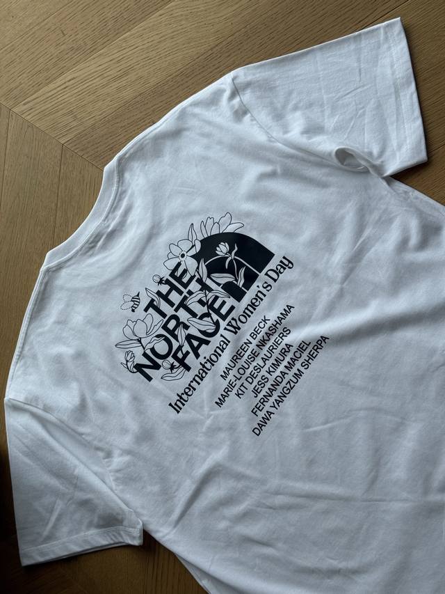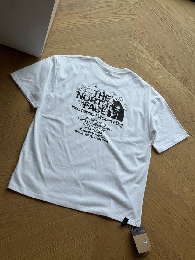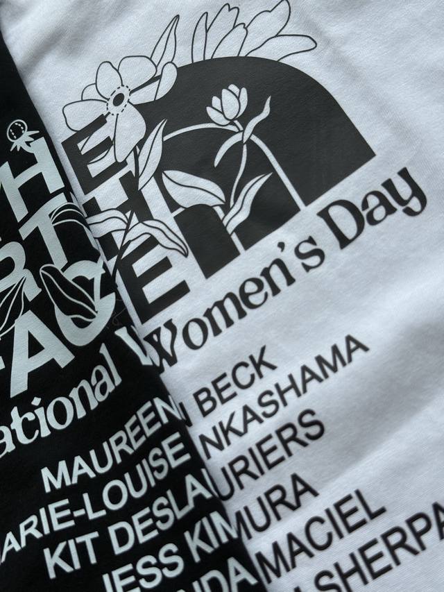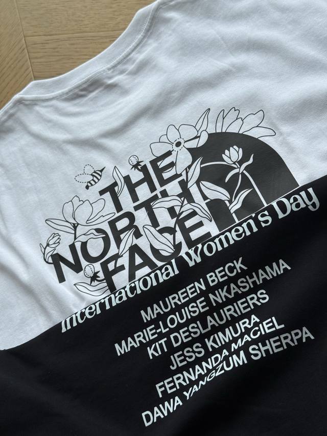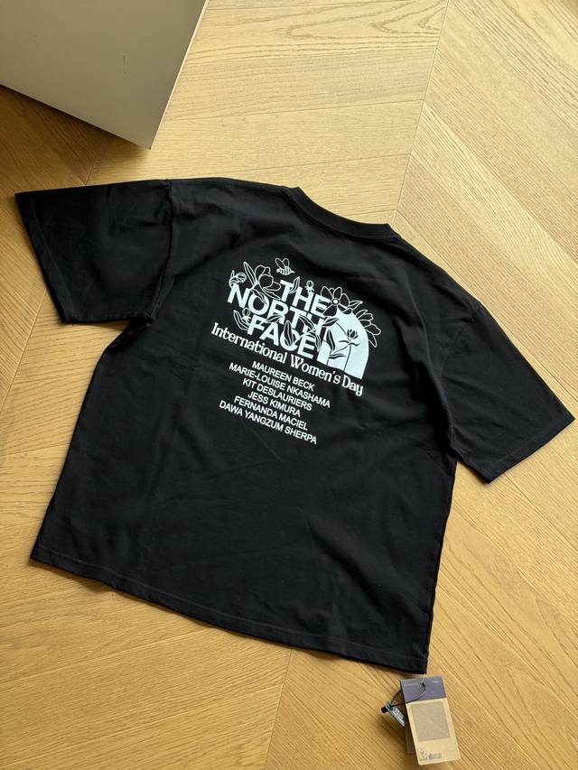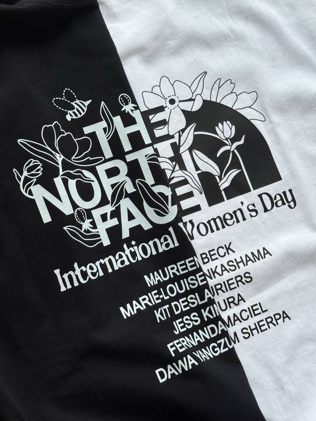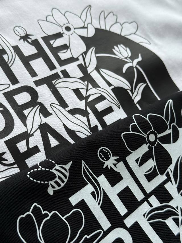 The North Face floral and letter print short-sleeved t-shirt. Unisex black and w