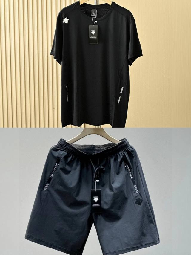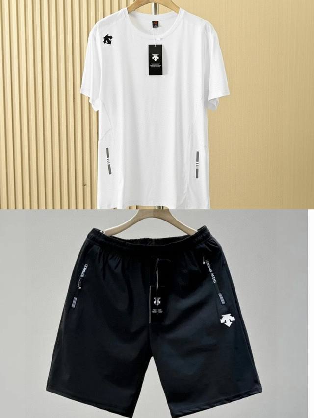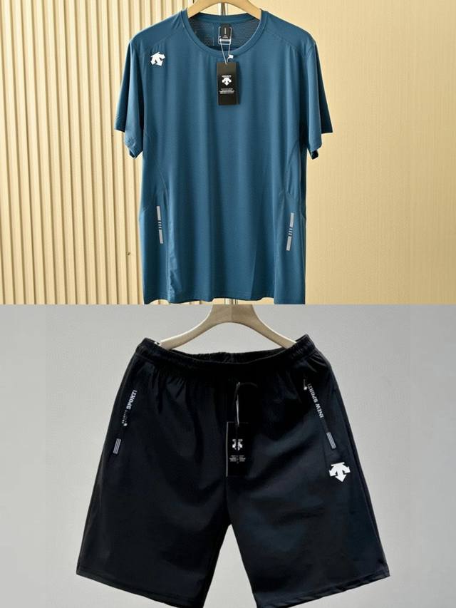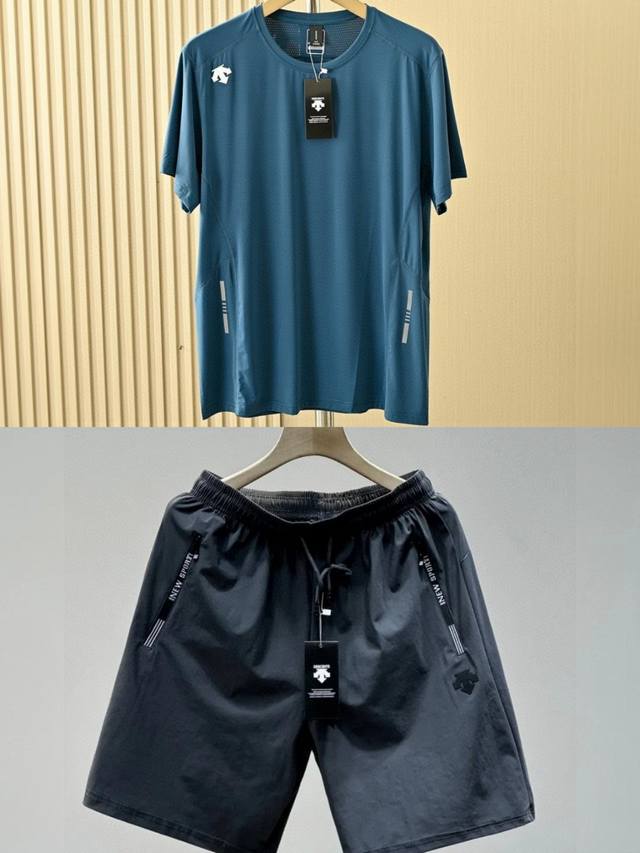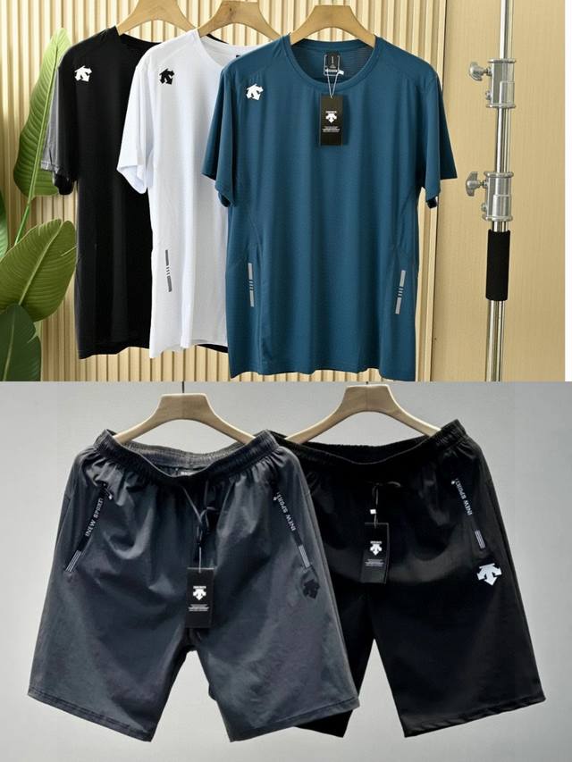 This lightweight Descente summer tricolor shorts and short-sleeve set features a high-quality, icy-feeling Descente short-sleeved T-shirt. Made of quick-drying, cool-weather nylon Tencel mesh, this fabric is smooth, comfortable, breathable, and doesn't cling to the skin! It's durable and retains its shape, making it a must-have summer item! Its high-end quality outshines lower-end options, perfect for both business and casual wear! Gradient, breathable pulse holes help wick away perspiration! Colors: black, white, and lake blue. Sizes: L, X, 1, 2, X, 1, 3, X, 1, and 4. Specially made in weight, it retains its shape and pilling properties, making it breathable and stylish! It looks great on the body and looks high-end!